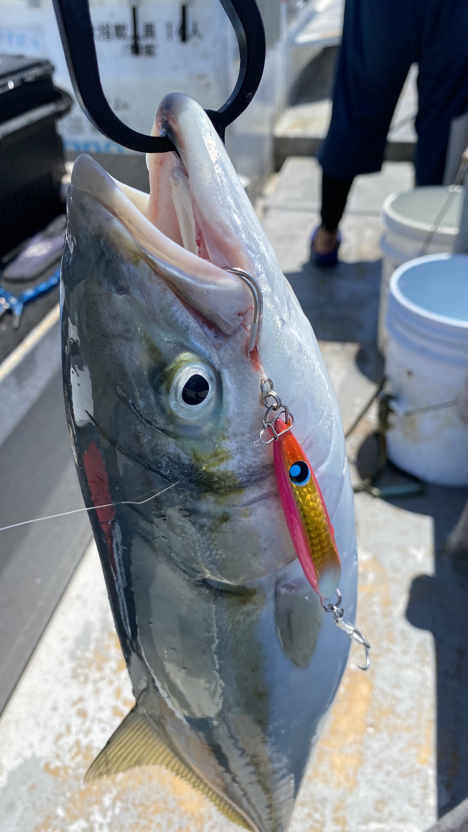 あれやこれや試していると、ジャックアイマルノミーやチビウロコショートの60gで60㎝前後のハマチや30半ばのヒラソウダがコンスタントにヒット!