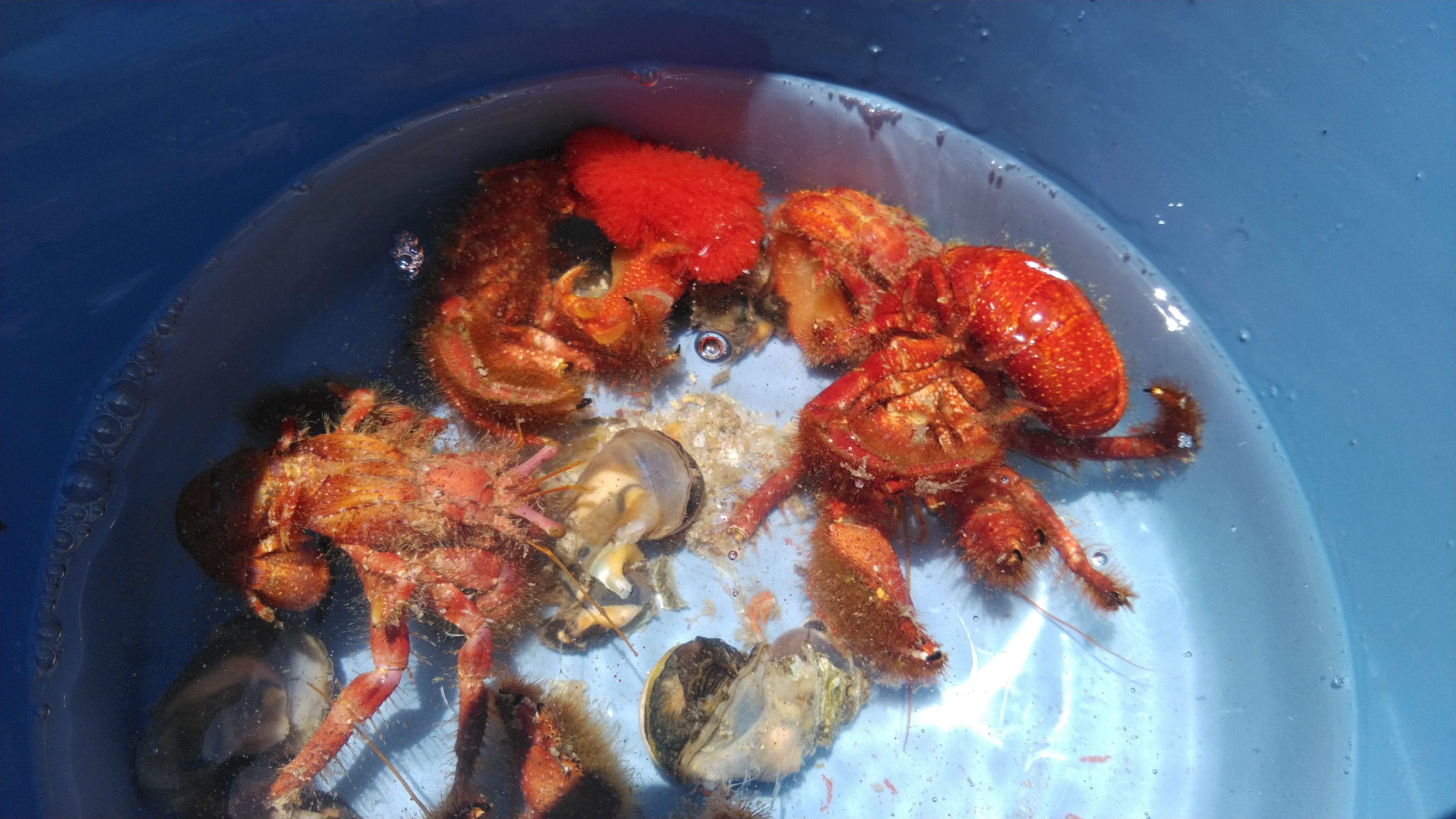朝ゆっくり出来る午後便で。出船前にヤドカリとサザエの殻割りをして出船!港から20分ぐらいで到着!