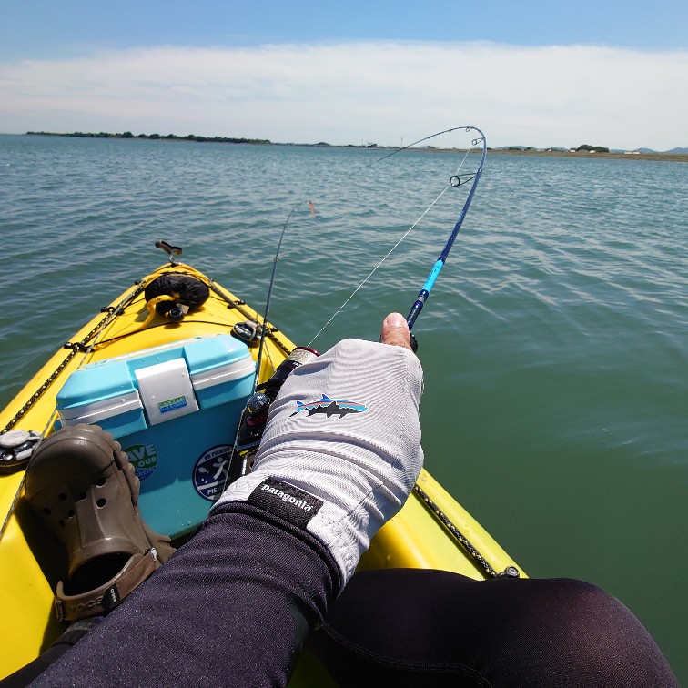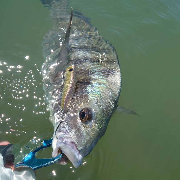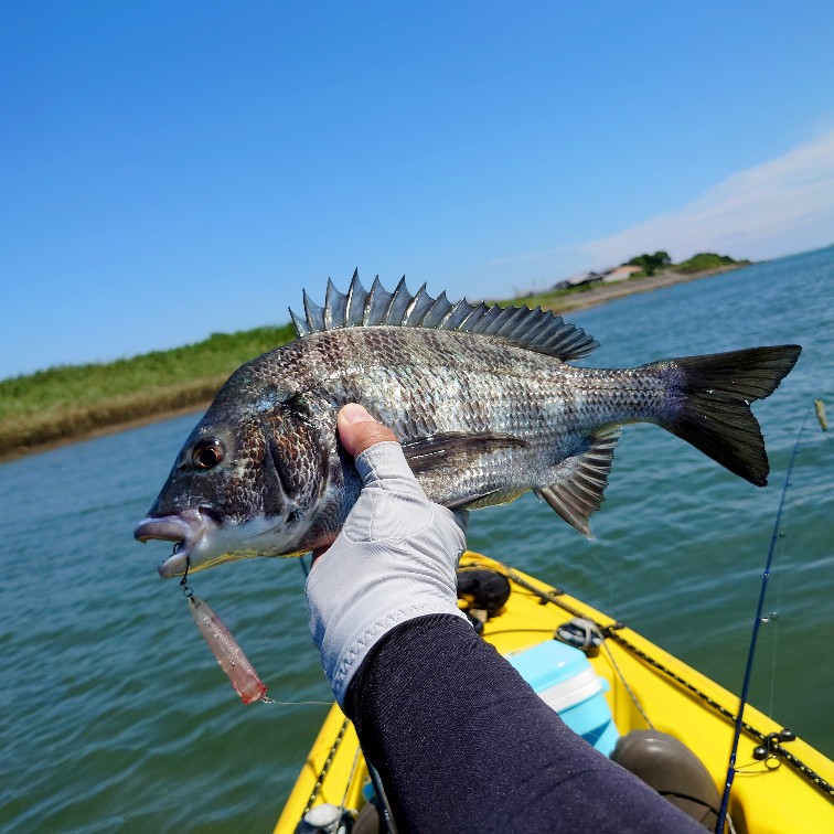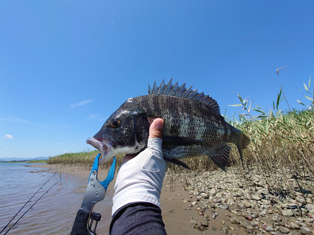 台風一過で快晴の三重県伊勢市宮川河口へカヤックチヌに行ってきました!台風の吹き返しの北西風が強くカヤックが進まない位の強風です。夕方には止むだろうと予想し、メインポイントは温存しておいて下流の葦原を丁寧にポッパーで探っていくと…、ルアーの後ろの水面が盛上がりチヌが追尾してきます、少し追いつくか追いつかないか位の距離を保ってジラせて吸込むバイトを誘発!『パッコーン!』といい音でルアーを持っていきます。浅瀬なのでなかなかのファイトで楽しませてくれたのは 42㎝!やはり葦原のチヌは捕食体制で活性が高いようです。43㎝を追加してメインポイントへ。しかし…北西の強風はなかなか止みそうもなくチヌは沢山見えていましたが反応せず終了としました。トップウォーターで狙うチヌは南風が良いような気がします。