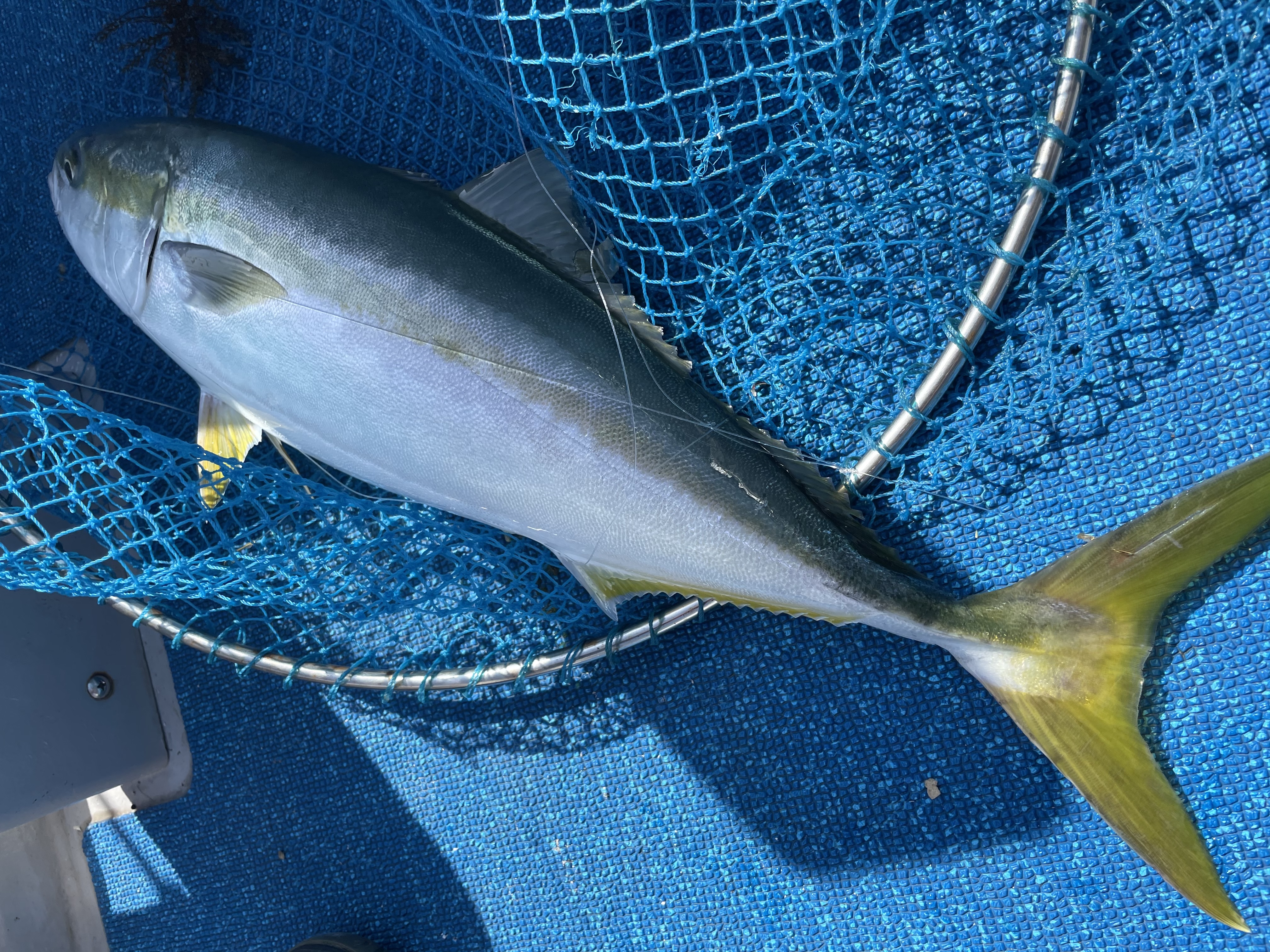 期待の朝一、まさかの反応無し。。。同船者の方にヒットするもバレ。徐々に潮が緩くなり、潮止まり寸前にベイトが何か確認する為、試しにタテ釣りやってみました。すると、すぐにベイトが付き、2秒後に強烈なアタリ!ワラサキャッチ!もう一回やってみると、シオキャッチ!この魚をジグで反応させたいのに。。。潮が大きくなる時にはチャンスかな〜?ラストのタチウオは入れ食い!高活性なので、先糸は太めでOK!