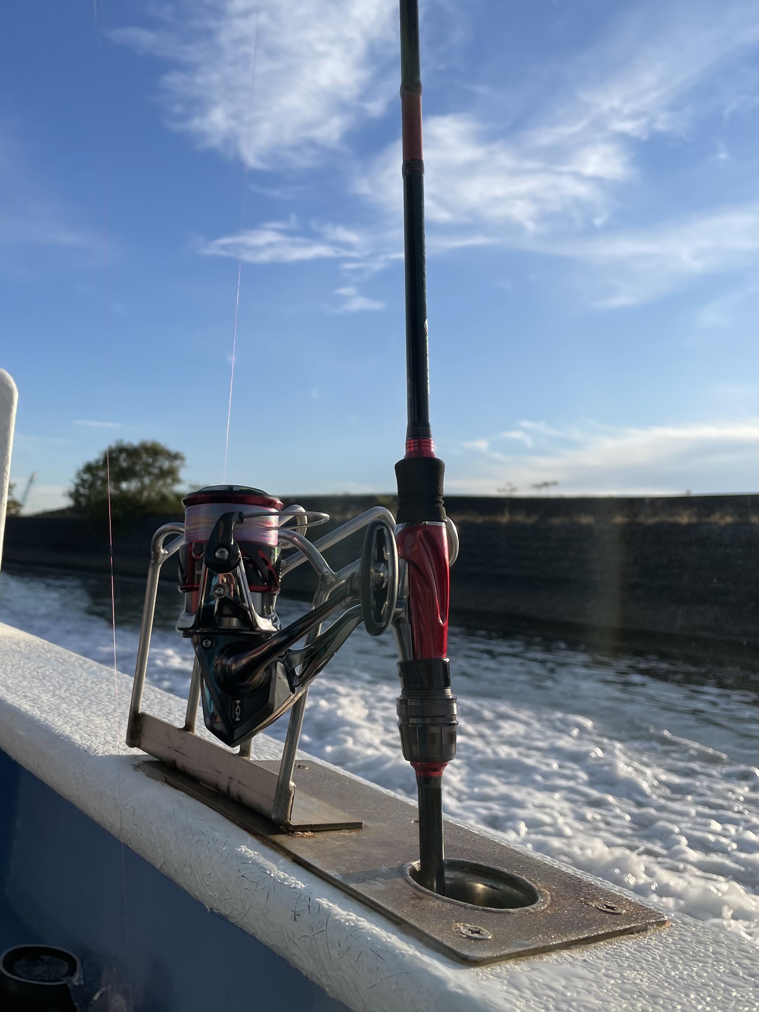 タックルはチニングロッド7.7fのMLに3000番のリール。やはり穂先が少し硬いので小さいアタリは弾いてしまいますが、アタリがあったら竿先を少し下げてあげるとしっかり乗ってくれます!軽くアワセを入れてあげるとしっかり針がかりしてくれるのでバレにくいですよ!