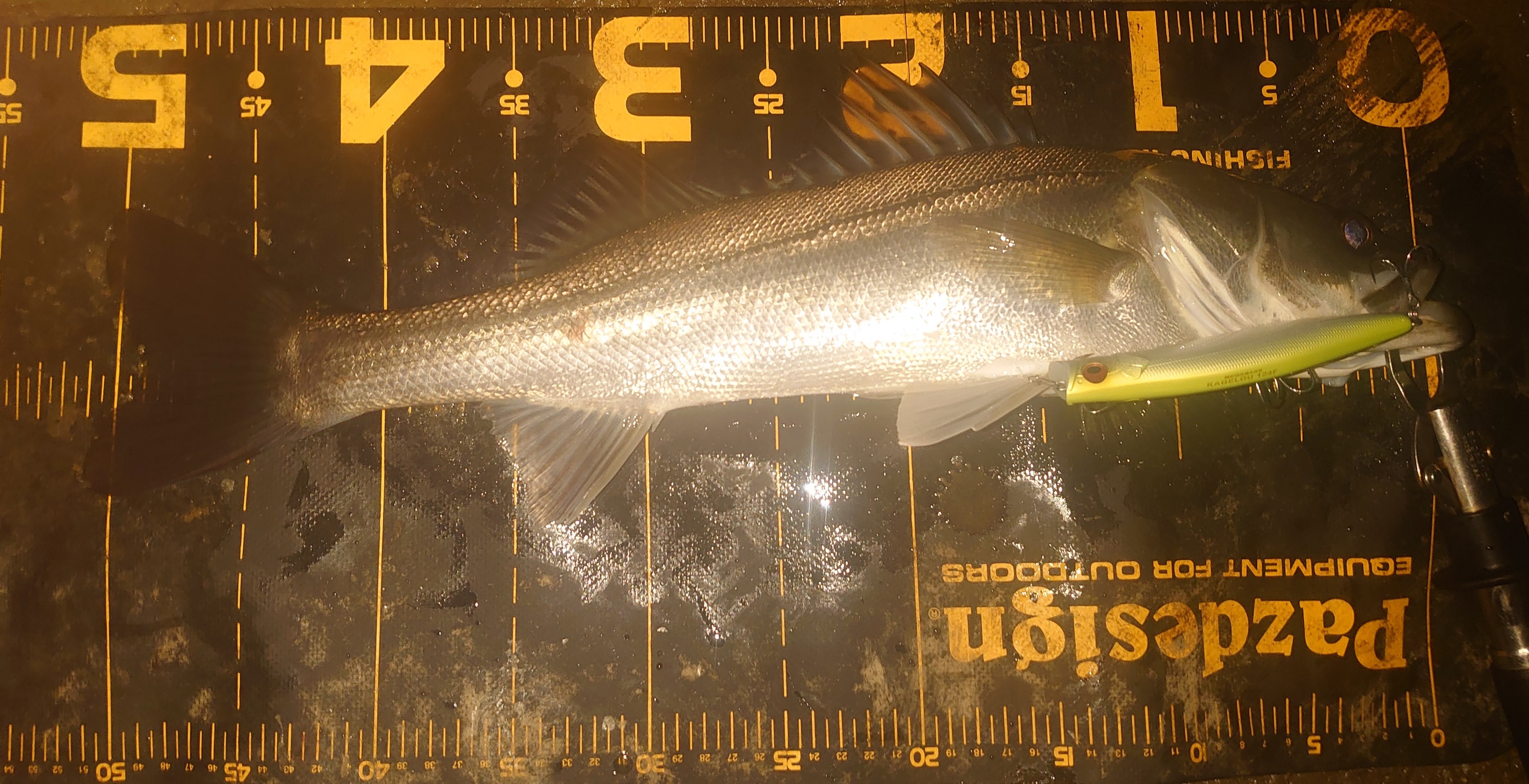 本日もシーバス狙いに行ってきました、本日は名港河川に行ってきました、良いタイミングを狙って入ったので開始直ぐに反応があり、直ぐにカゲロウ124にてヒット、その後もコンスタントにアタリがあり、カゲロウ124で4本、サスケレッパで1本、ソマリ90で1本、かっ飛び棒シャローライトで2本の計8本、サイズは全て50cm台でした。名港シーバスもまだしばらく好調は続きそうです。