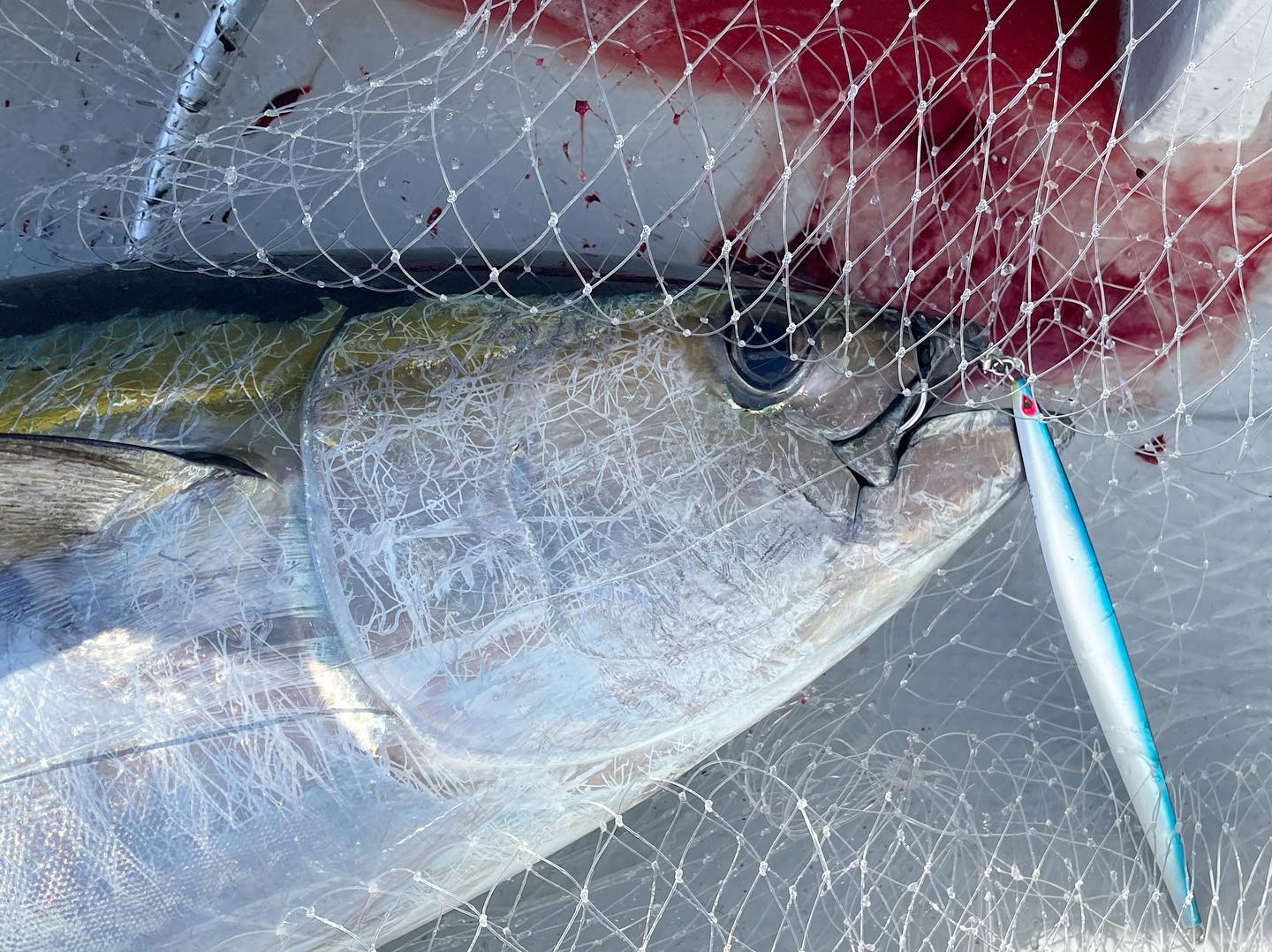 釣り方は魚の反応がある層の少し下にジグを落として高速ワンピッチジャークをしているとズドンと竿に重量感が乗る感じのパターンでした!!