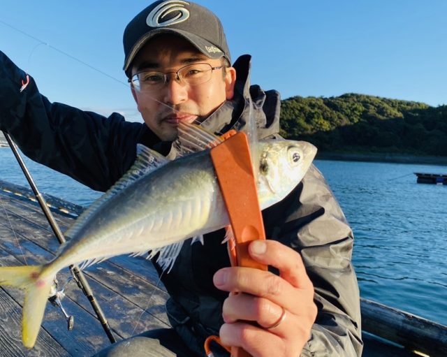 エサ取りが多い中、ようやくアジが!サイズも大きく(約30cmほど)良く引きました。