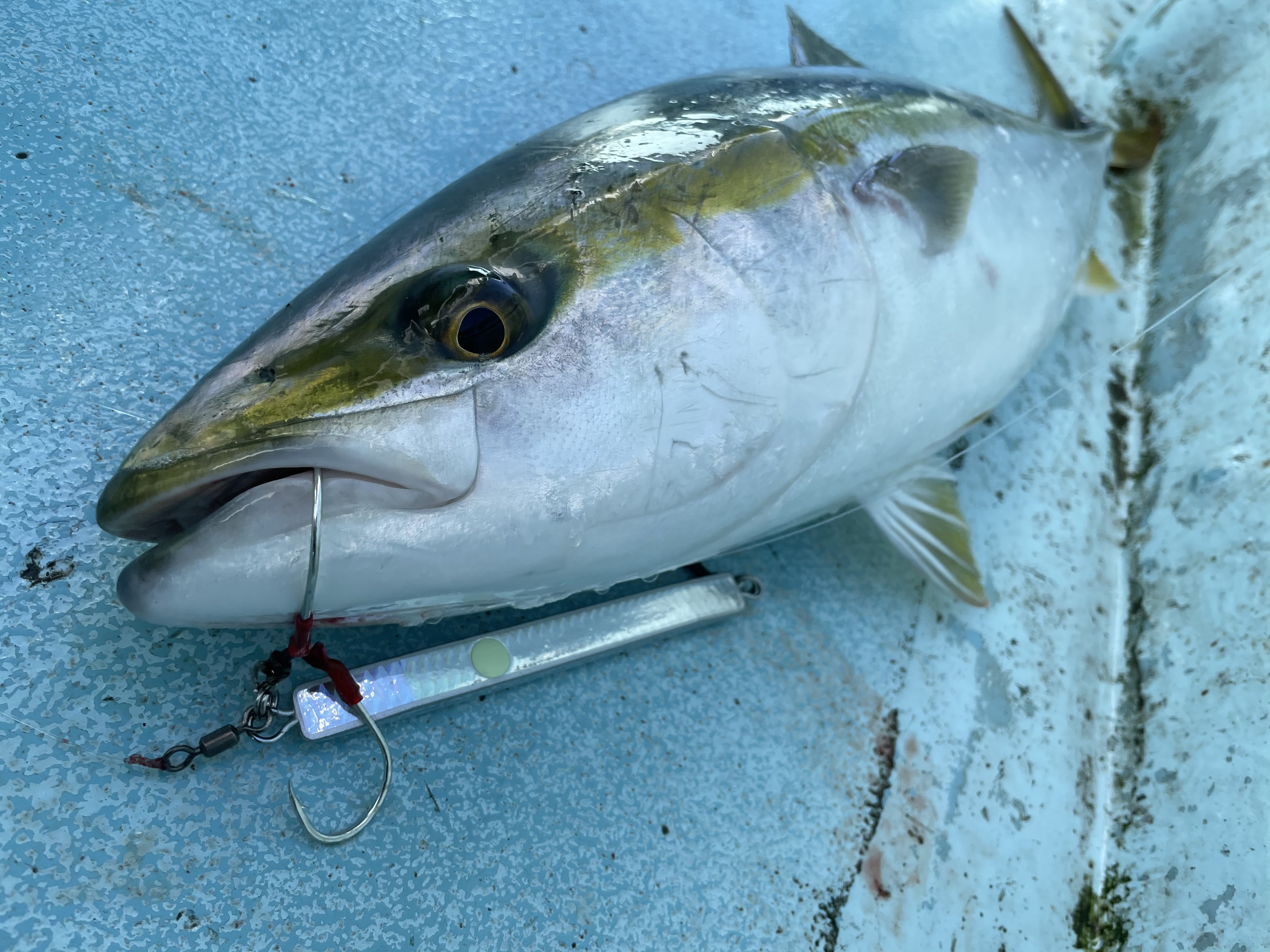 それからが凄かった。ジアイ到来で、サワラ入れ食い状態!ワラサやハマチよりもサワラが多い!同船者の方を見ていると、ショートジグのゴールド系のカラーが良く釣れていました!
