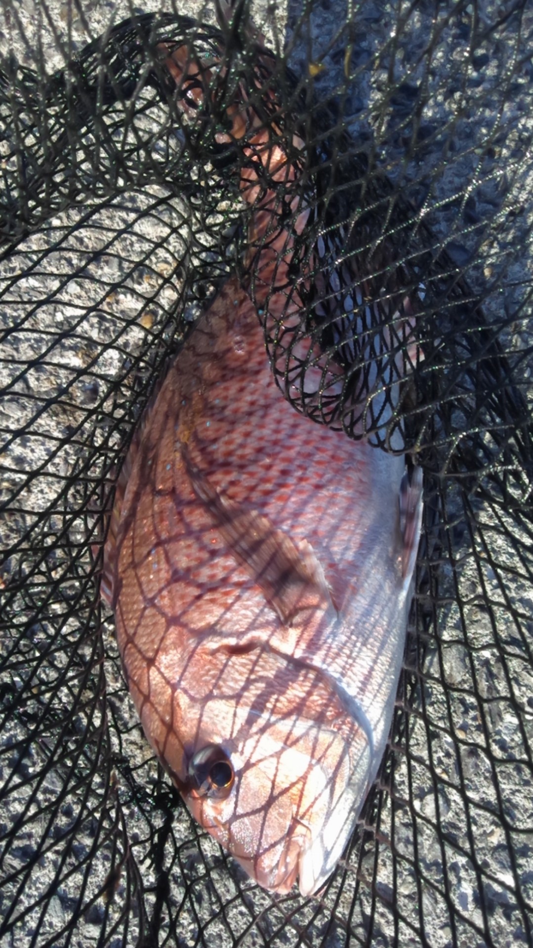 南知多の美浜フィッシングパークさんに行って来ました。午後券を買い、12時釣りスタート!エサはカメジャコ、カニ、アオイソメを持っていきましたが、この日はアオイソメにアタリが多く、カメジャコはかじられる程度でした。最初はアタリがなく、常連さんに聞くとオモリが重すぎると魚が逃げるよ、とのアドバイスを頂きブッコミ仕掛けの5号オモリを1号に変えて静かに仕掛けを投入すると、すぐにアタリ!マダイが釣れました!この釣り場は軽めのブッコミ仕掛けでマダイが釣れるので、短めのシーバスロッドがあればOKです!!