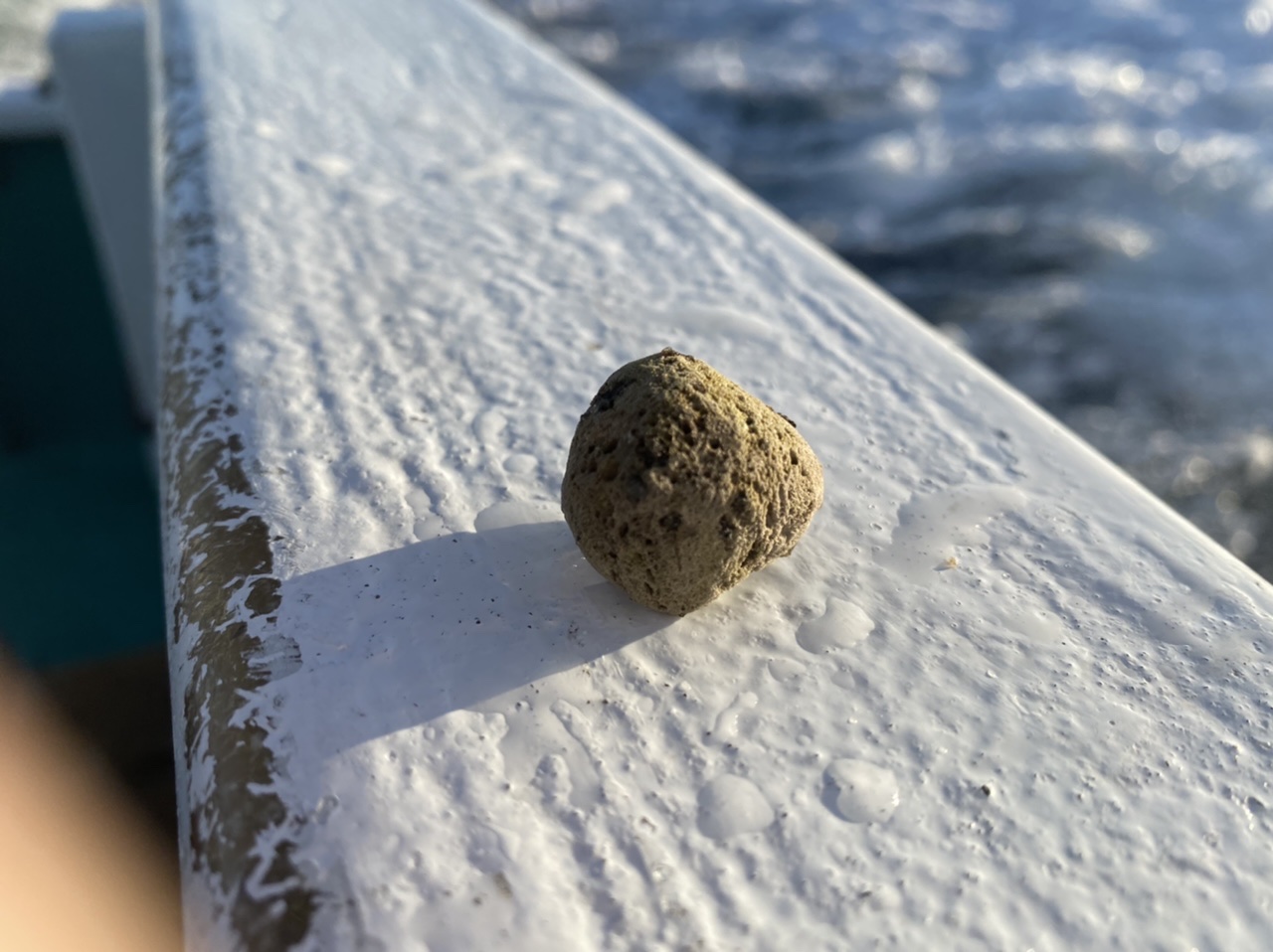 水面にはニュースで話題になっている軽石が無数に浮いていました。