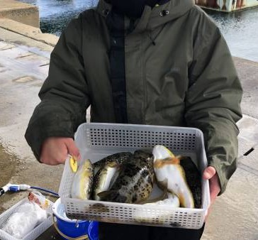それから海がさらに荒れてきたので湾内に戻ります。あたりがとりにくいのでヤマワのシングルアームの胴突き仕掛けに変え、再スタート!変えたおかげかあたりがとれ、5匹追加できました!!