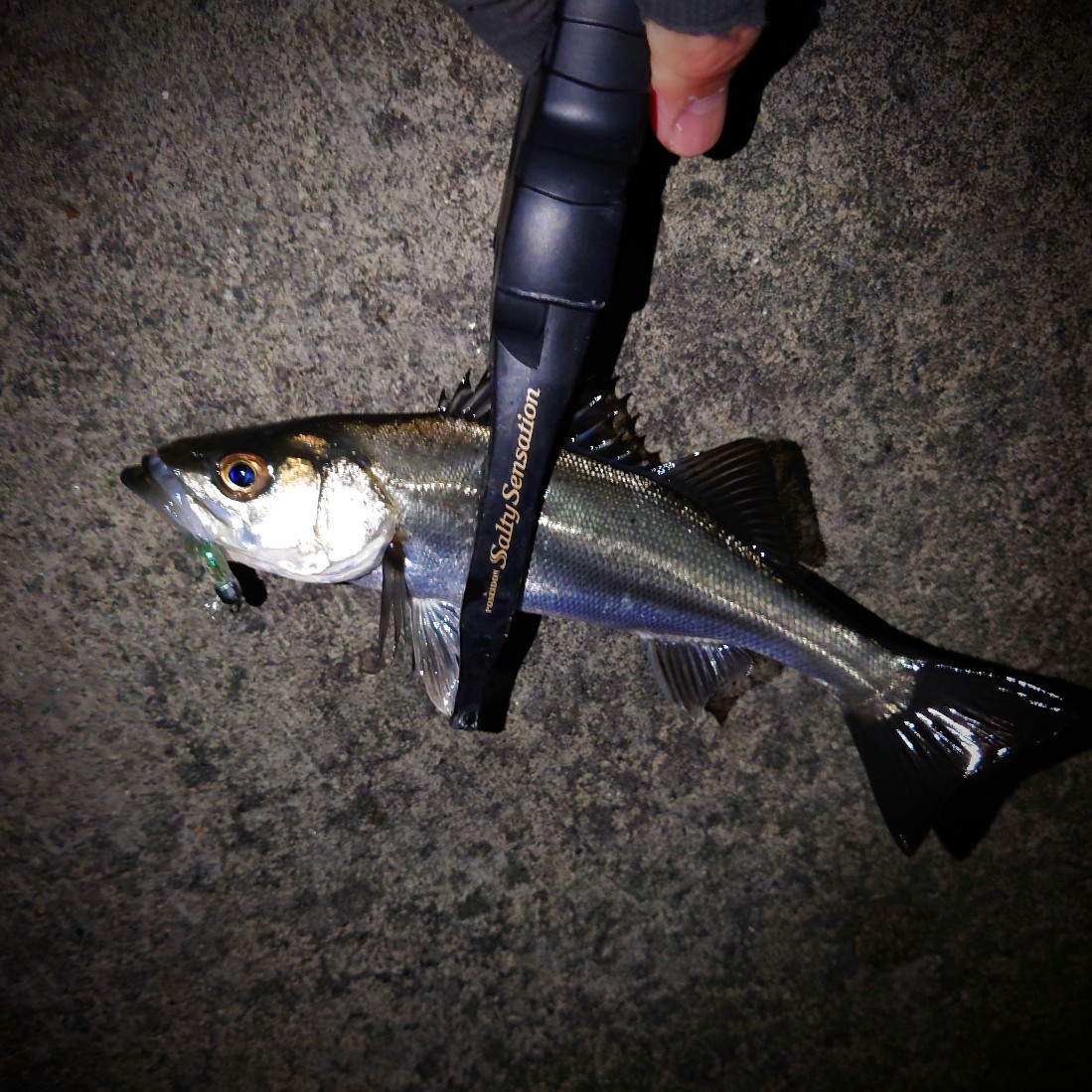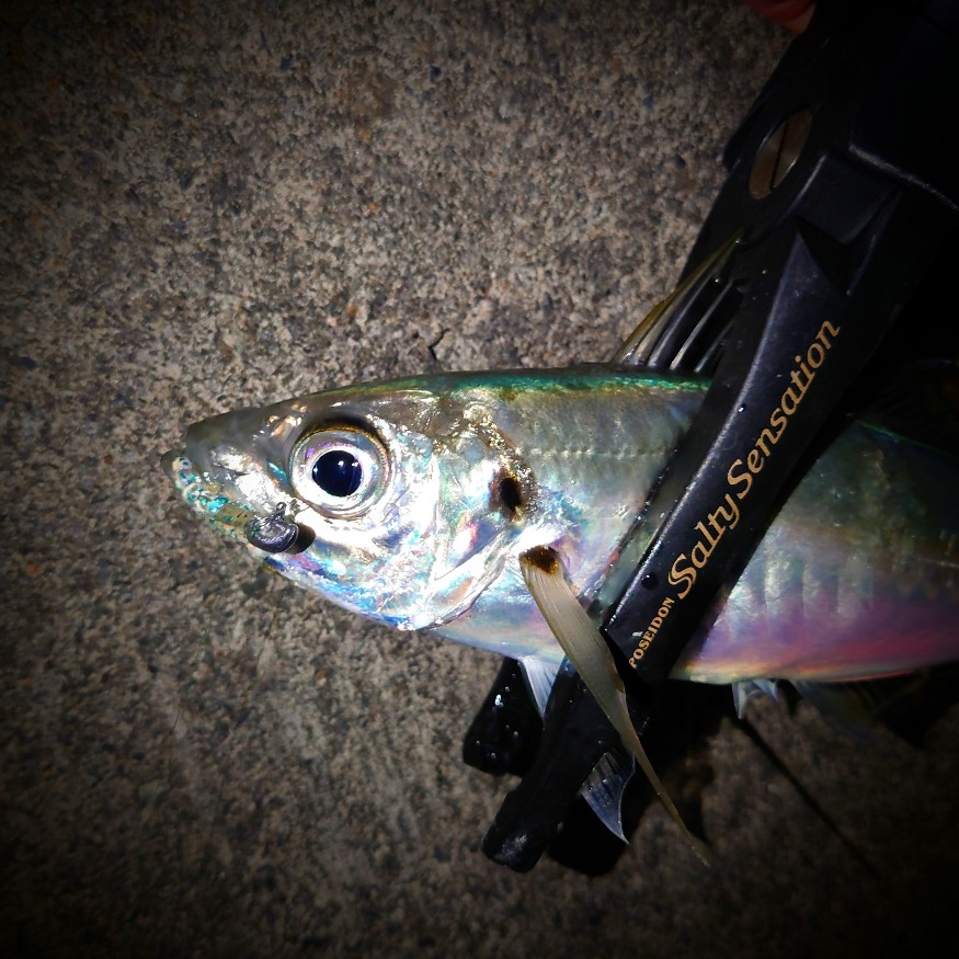 前回の釣行で豆アジが混じっていたので、あまり期待していなかったのですが…、ボトムをじっくり攻めてみたいと考え1gのジグヘッドで眠たくなるほどカウントダウンしてゆっくり動かすと…、『モゾモゾ…、クッ!』と押さえ込むような反応で23㎝♪ 同じパターンで4連発!もしや?と5カウント辺りのレンジを探ってみましたが、10㎝ほどの豆アジだらけ…。再度、ボトム攻め!クッ!と押え込みの反応が!22〜23㎝の良型アジの3連発♪ 小一時間ほどして反応が無くなりました。表層の豆アジを暫し堪能して寒さに負けそうになり強制終了しました。激寒ですが、水温が下がりボトムにベッタリ着いている良型アジは潮の良いタイミングを狙っていけば反応してくれる日がありそうです。