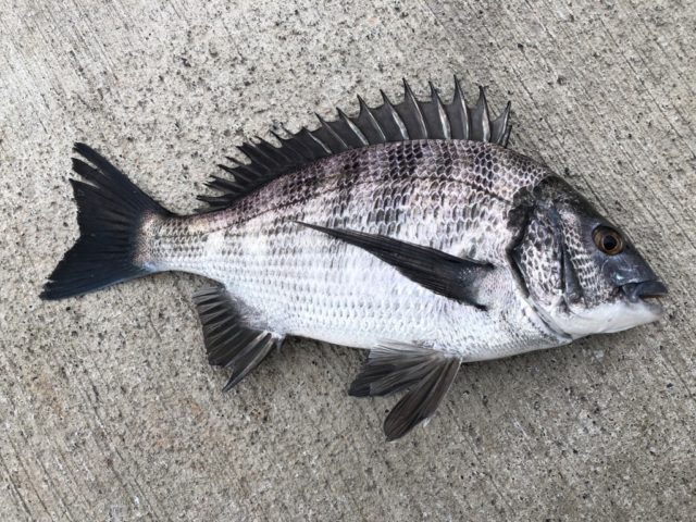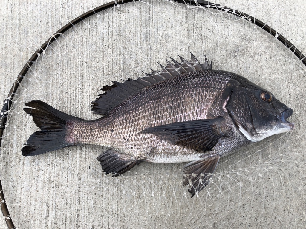 数分後にもモゾモゾっとしたアタリで40cmジャストのクロダイを追加。