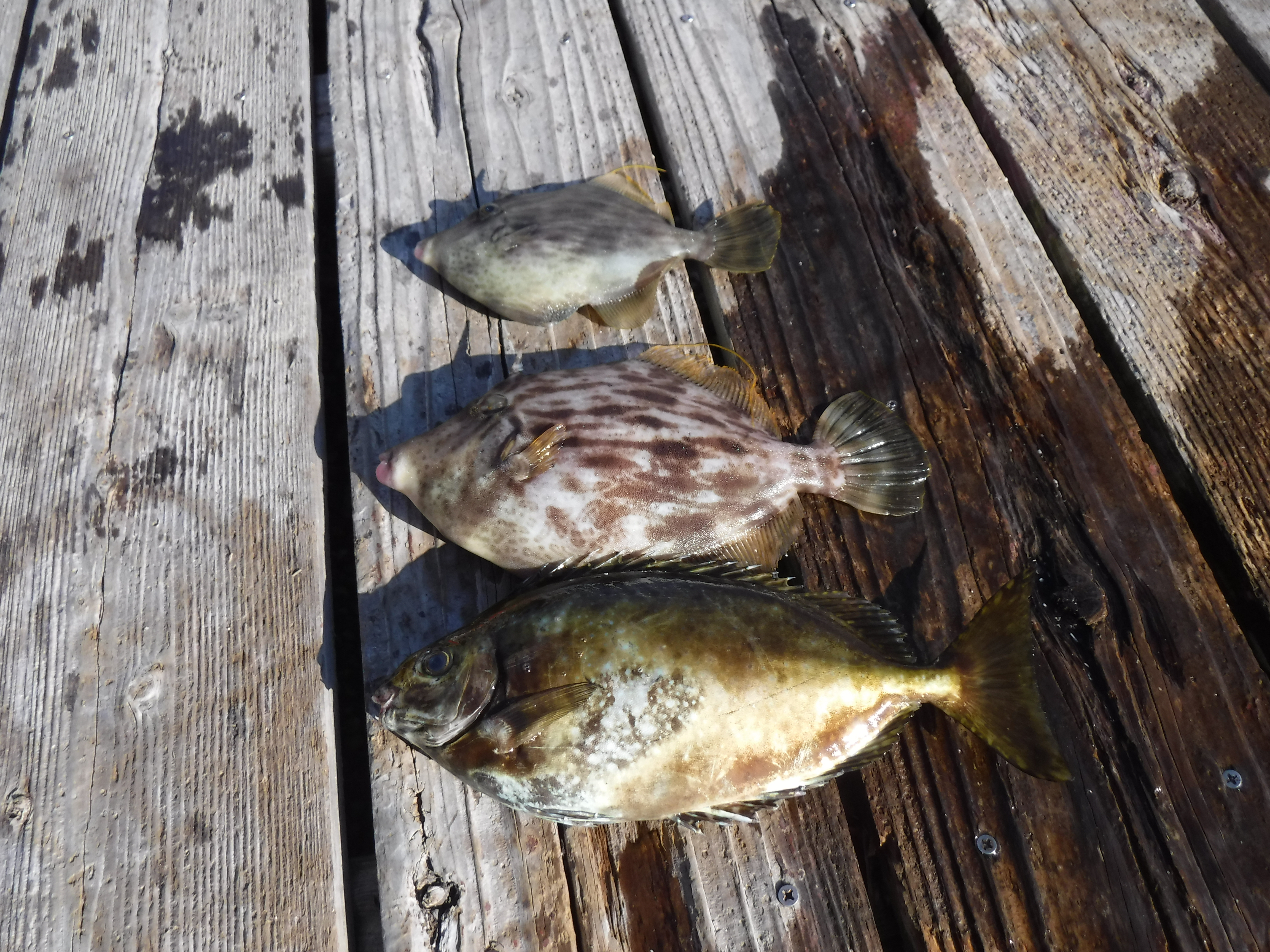 準備をしてすぐにウキにアタリが出たのですが針がかりせず。そんな感じがしばらく続きましたがやっと合わせる事ができ上がってきたのはカワハギでした。引き続きアタリはありますがカワハギ、フグ、アイゴ、ボラと本命グレには出会えませんでした。