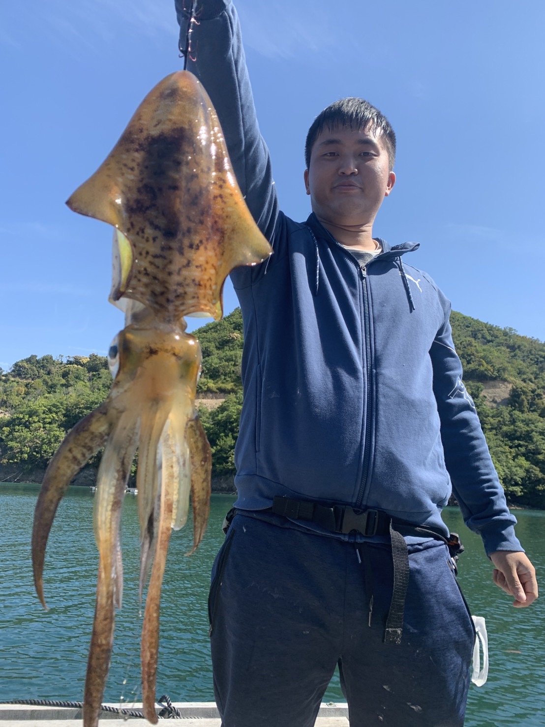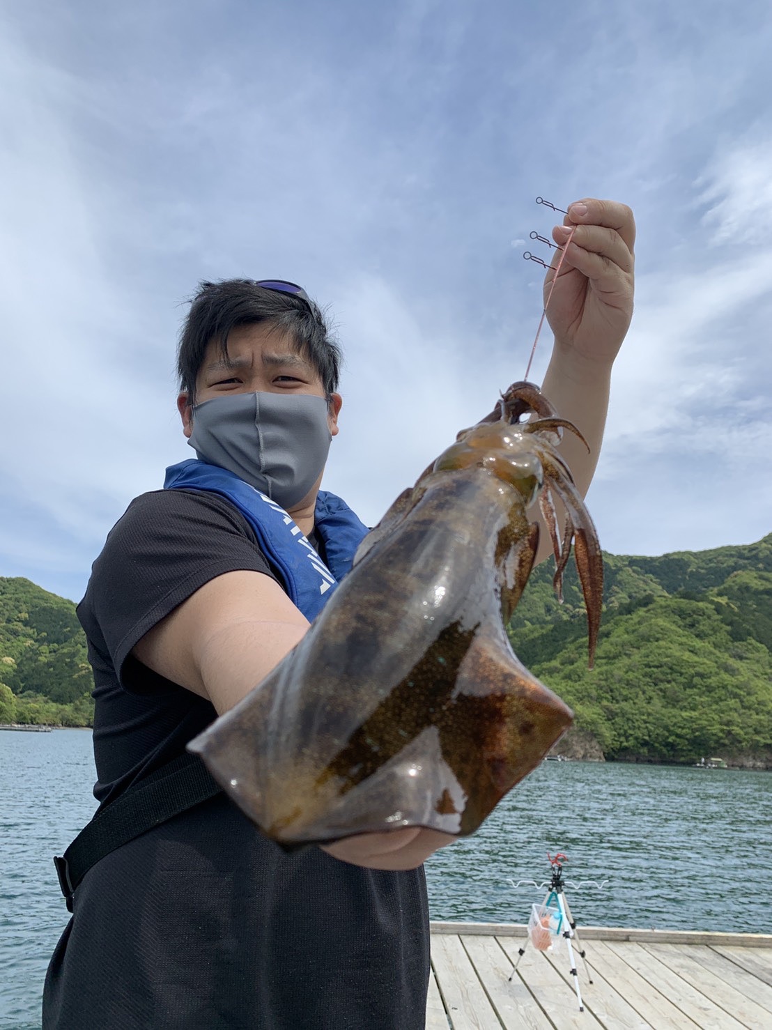 それが功を奏したのかジィーとドラグが出ていきます。釣り方教えながら檜垣君がヤエン投入でアオリイカをゲット!その後僕にも同じようなサイズが釣れました。