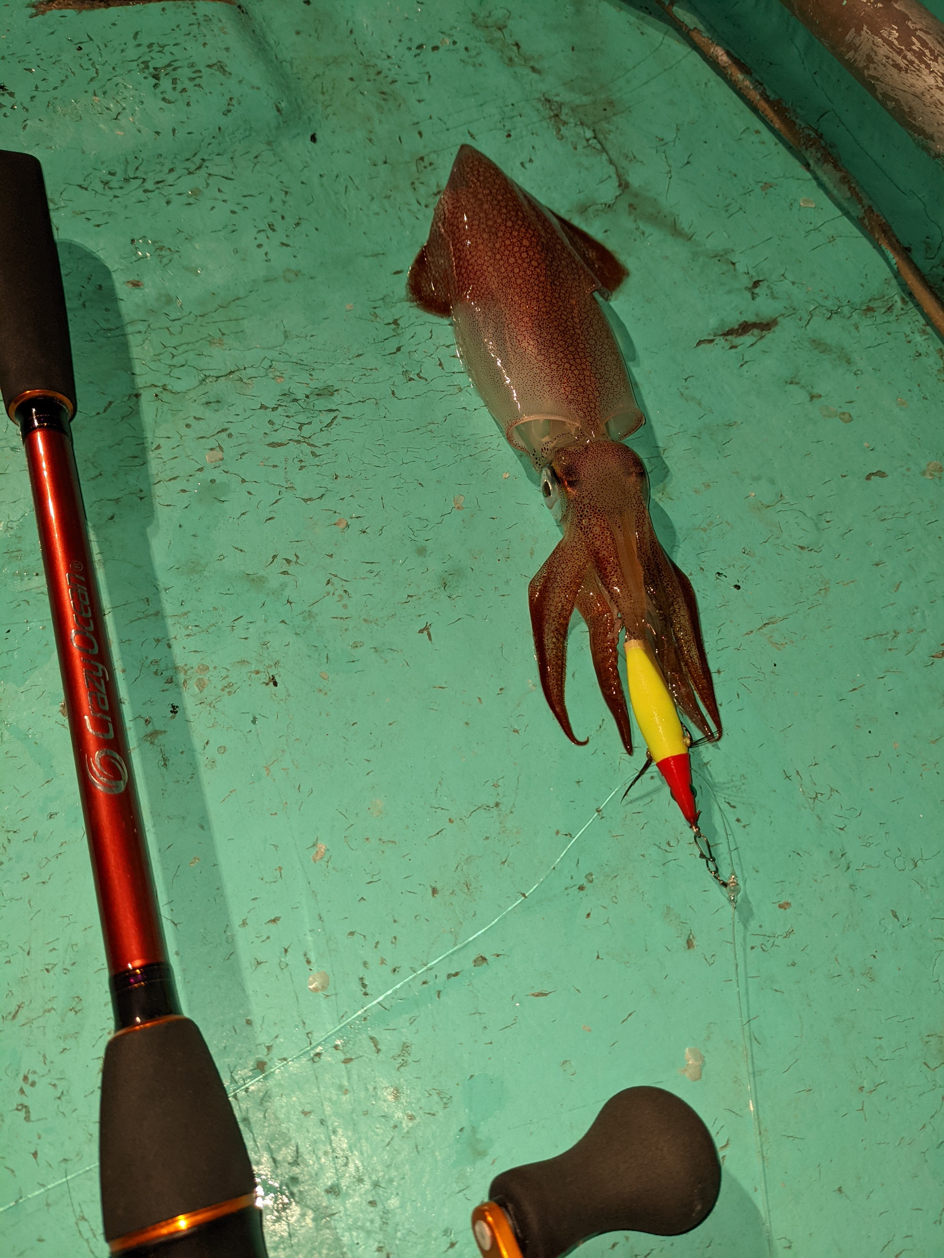 テンションもアタリも下がってしまい、そこからポツリポツリとイカとアジを追加して終了。