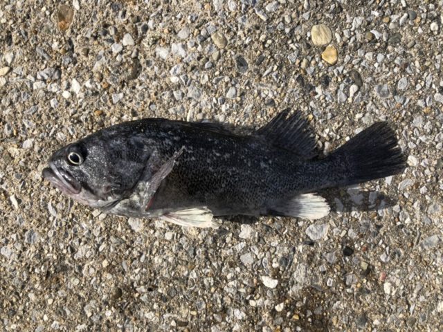 数投していたら手元にコツン!とアタリが! 30cmオーバーのクロソイが釣れました!