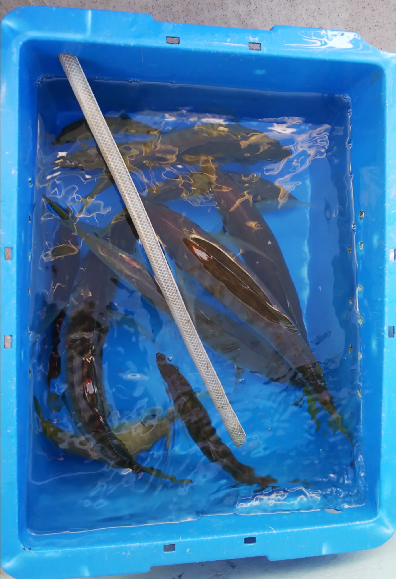 大アジが連日釣れているとのことで鳥羽市国崎の勝丸さんにお世話になりました。午後便で出船、底から4~5mあたりを探ります。早々にアタリがあり上げてきますと3本針が全てなくなっている。フグの猛攻に3回ほど受けてからは順調にアジを確保。この日は38センチの大アジも釣れて良かったです。直前でバラシもありましたので必ずタモを使用することをおすすめします。まだまだ釣れそうですのでぜひ行かれてはどうですか?