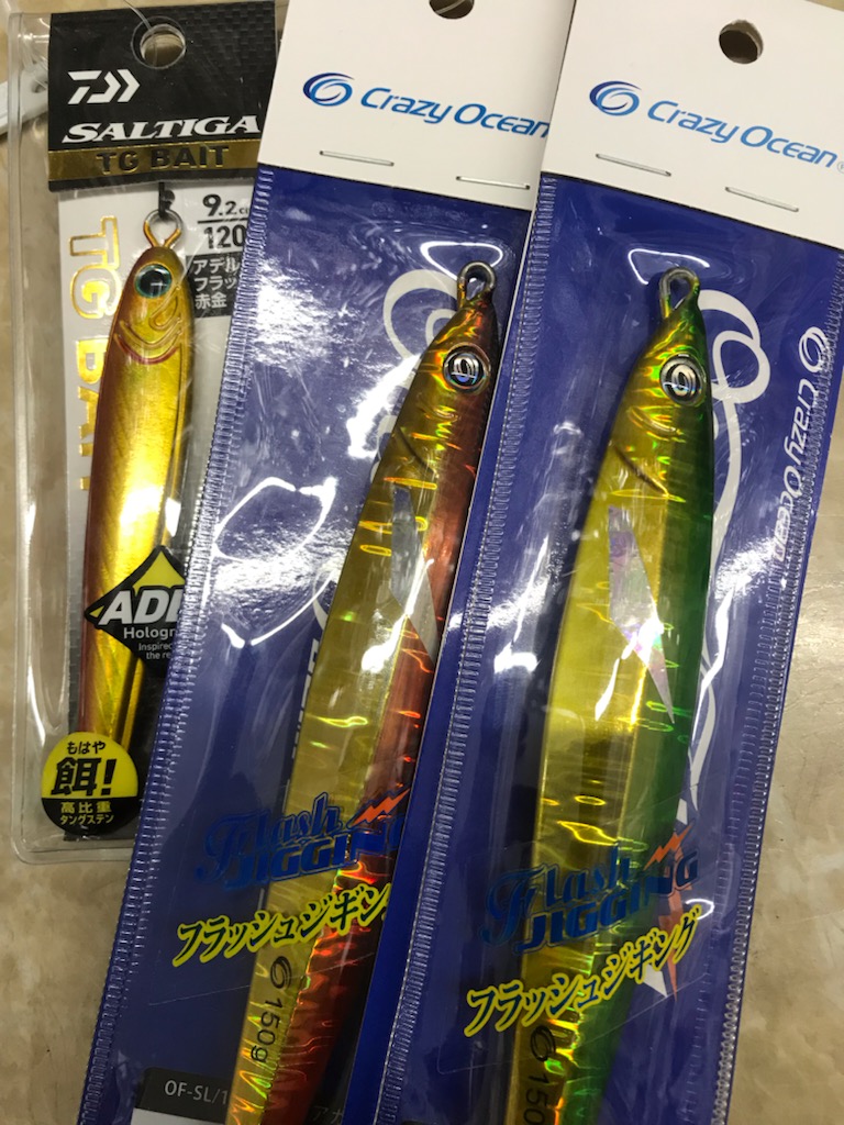 こんにちは名古屋南店の池田です☀今回は伊良湖沖のタイラバとジギングに行ってきました。この日は天候も良く、釣り日和!しかし気持ちと裏腹に厳しい釣果になってしまいました。ベイトはカタクチイワシで、ボトムにベッタリや、浮いていたり・・・オーシャンフラッシュセミロング130gからスタート!反応が無かったのでTGの120g投入!数投目でガツン!!ときましたが船の下に入り込まれてPEごとラインブレイク(泣)船長曰くこの時期は数は難しいけど来たらデカいよ!・・・確かにロッドがブン曲がってなかなか魚が上がってこなかったです。その後110m前後のディープタイラバに。反応が無いまま納竿となってしまいました。これからが本番!また次回リベンジしてきます。今回お世話になりました「海正丸」さん ご予約は090-1748-3324です。船長またよろしくお願いします!