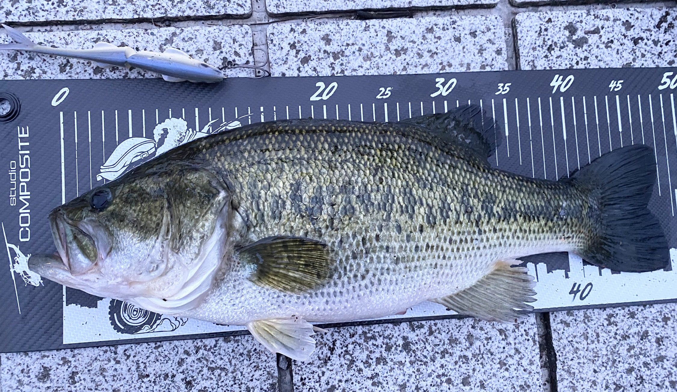 その後夜までやり、練習中のデスアダー5インチの0.9gジグヘッドスイミング釣れ、またも人が増えてきたので終了となりました。
