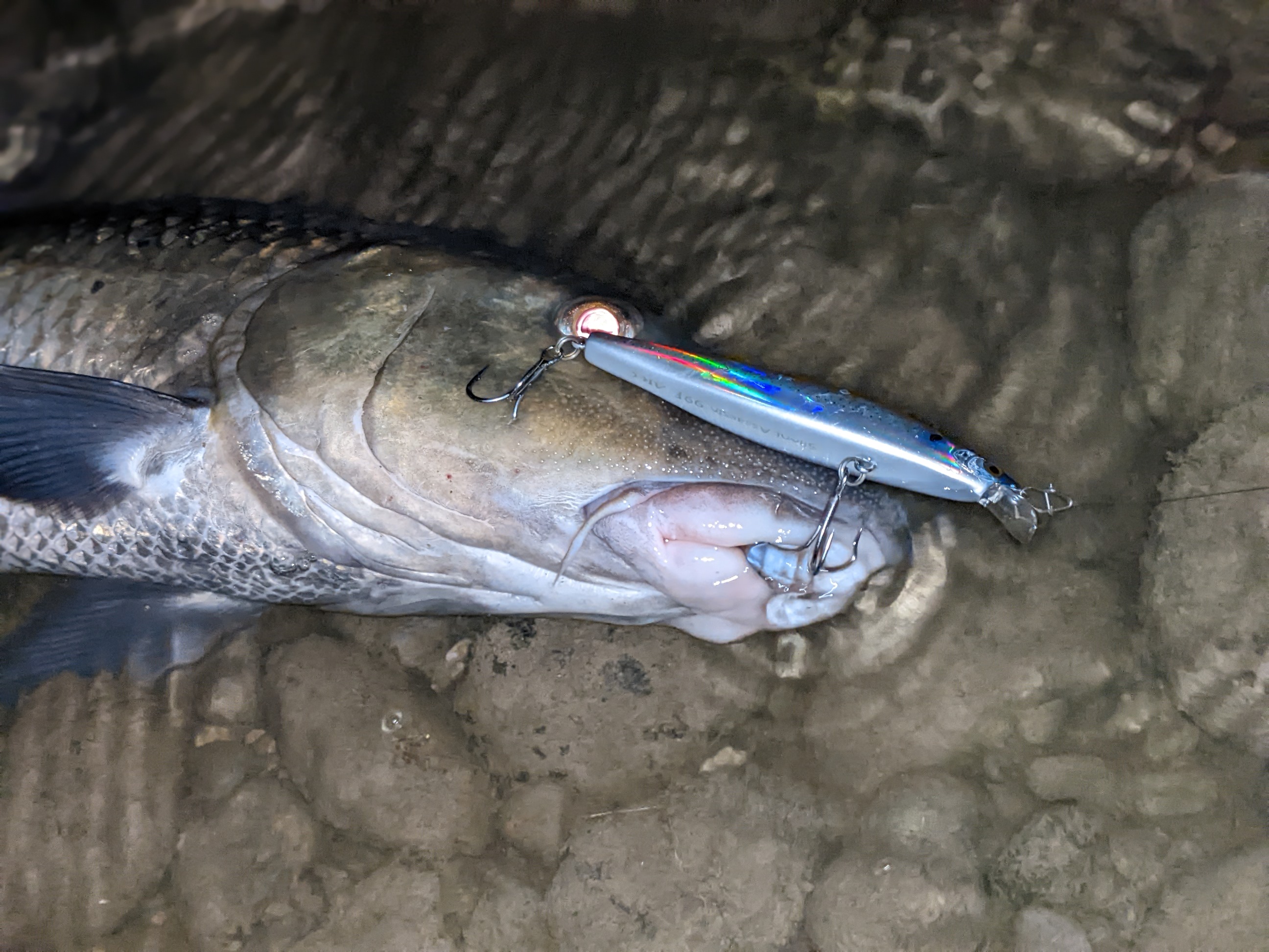 グイグイ流れるのでシンペンは諦めてミノーで攻めてると…