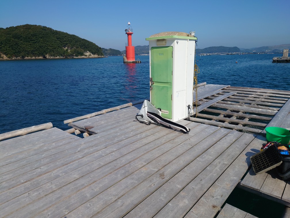 桜満開の絶好の筏日和、海香さんの赤灯台近くの筏に乗せてもらいました。この筏は赤灯台周りの中では少し水深があり10mくらいです。他は7~8mのポイントが多い。
