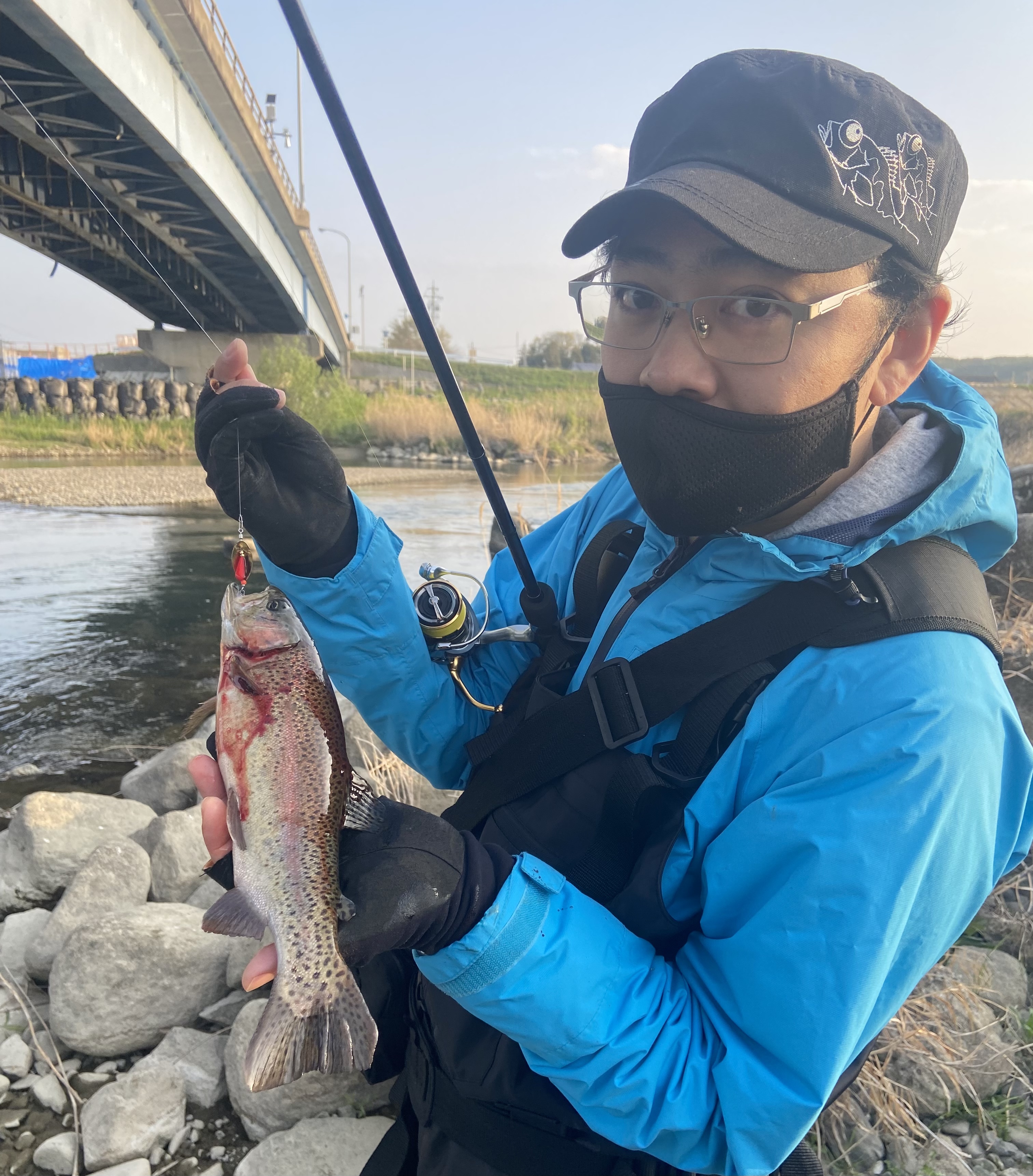 一緒に行ったメンバーはナイスサイズのニジマスを釣っていました。