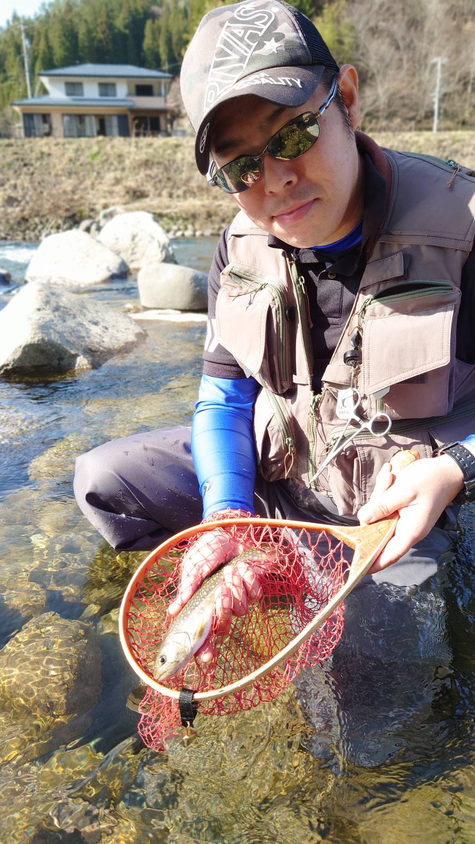 4月に入り長良川本流でもアマゴが釣れる季節となりました。当店高柳君と一緒に行って来ました。朝一は餌釣りで挑戦。ここは出るだろうと思うポイントは必ず釣れますね。餌はキンパクです。数もそこそこ釣れたのでルアーにシフトチェンジ。これがなかなか面白くハマリそうです。これからは餌とルアーの二刀流です。(笑)ルアーではバラシも多く苦戦。途中30㎝程のイワナが釣れ大満足でした。また行きたいと思います。