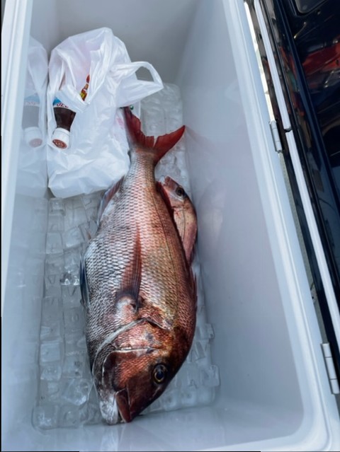 なかなか潮もゆるく、この日は状況が落ち着いていましたが、それでもマダイの釣果はポツポツといった感じ、自分も30cmと60cmが釣れました。70cmを超える大型も上がっていましたので、まだまだ今後も期待できそうです!