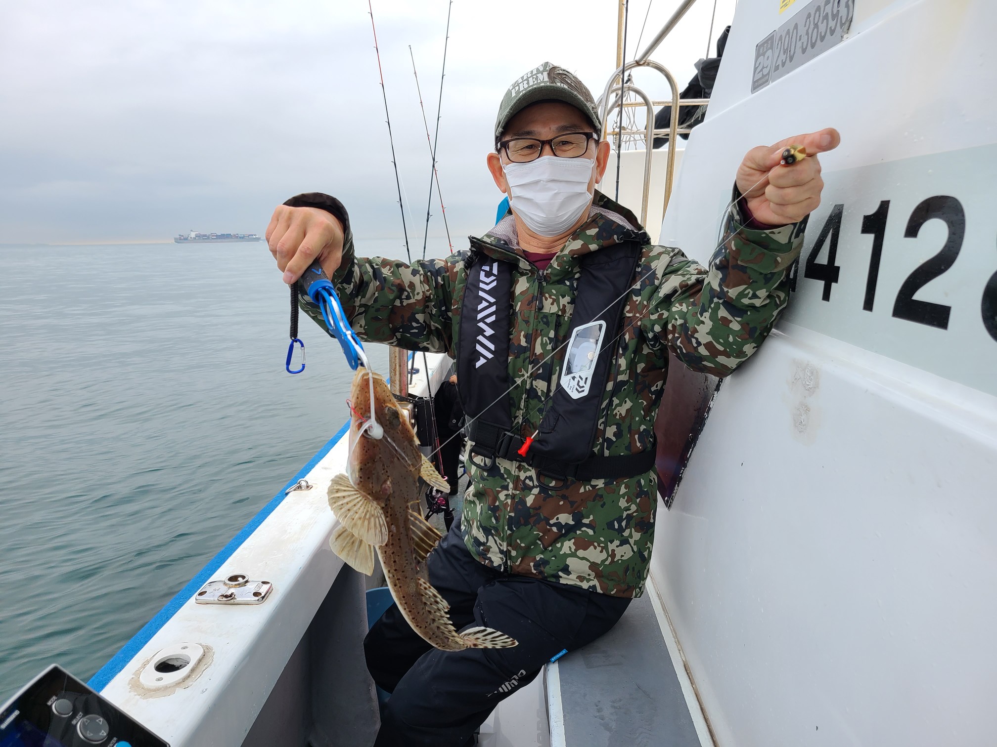 前回は、日本海ディープタイラバでしたが今回は神島周りの水深50メートル位から始まりましたが雨予報の天気予報に反して曇!船長のアナウンスでボトム付近に反応があるとのことで80グラムでスタートしましたが、2時間程アタリも無くゆったりと時間だけが過ぎタイラバのスカートの部分を「タナジグのあいやータコカーリー」に替えて待望のアタリ・・・・・内心ドキドキ(>_<)小気味良い引きを楽しみながら慎重に巻き上げてきて姿を現したのは、ワニゴチでした(T_T)その後はたまにアタリがあるもののキッチ出来ず再度リベンジ確定してしまいました。