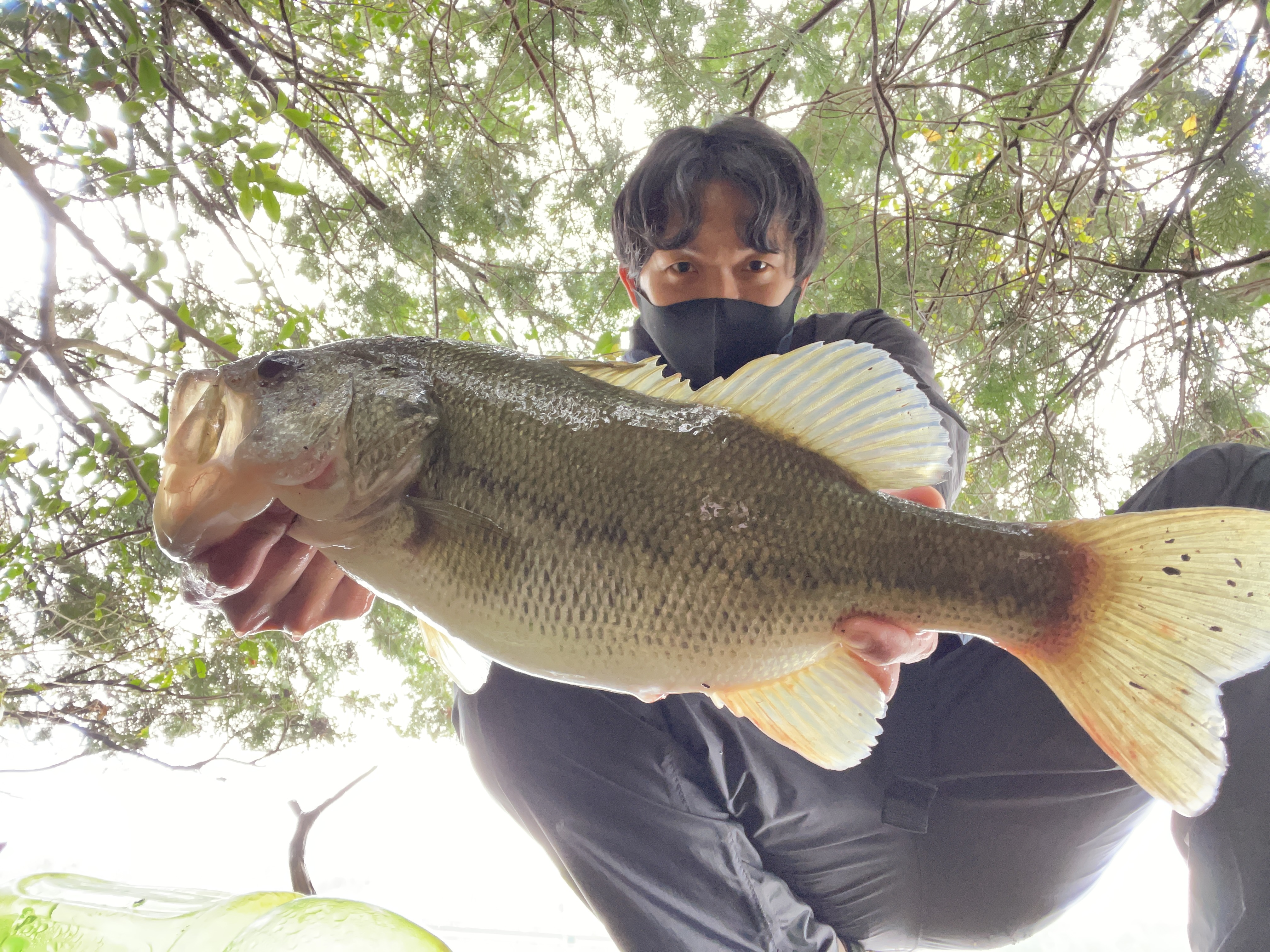 45cmくらいのバスでした。ついて30分くらいで釣れたので、満足して帰りましたが、粘れば2〜3匹は釣れそうでした。