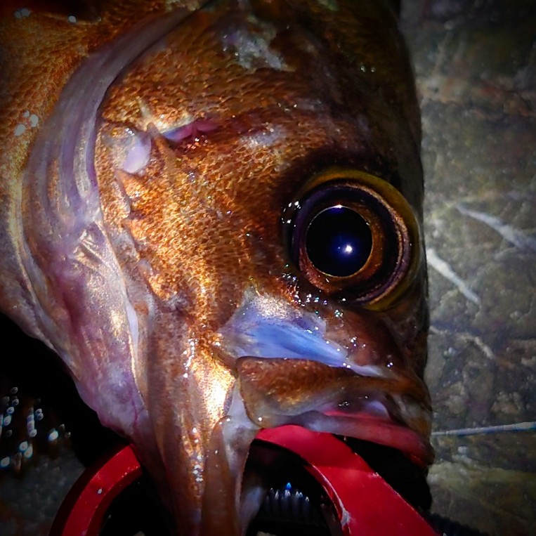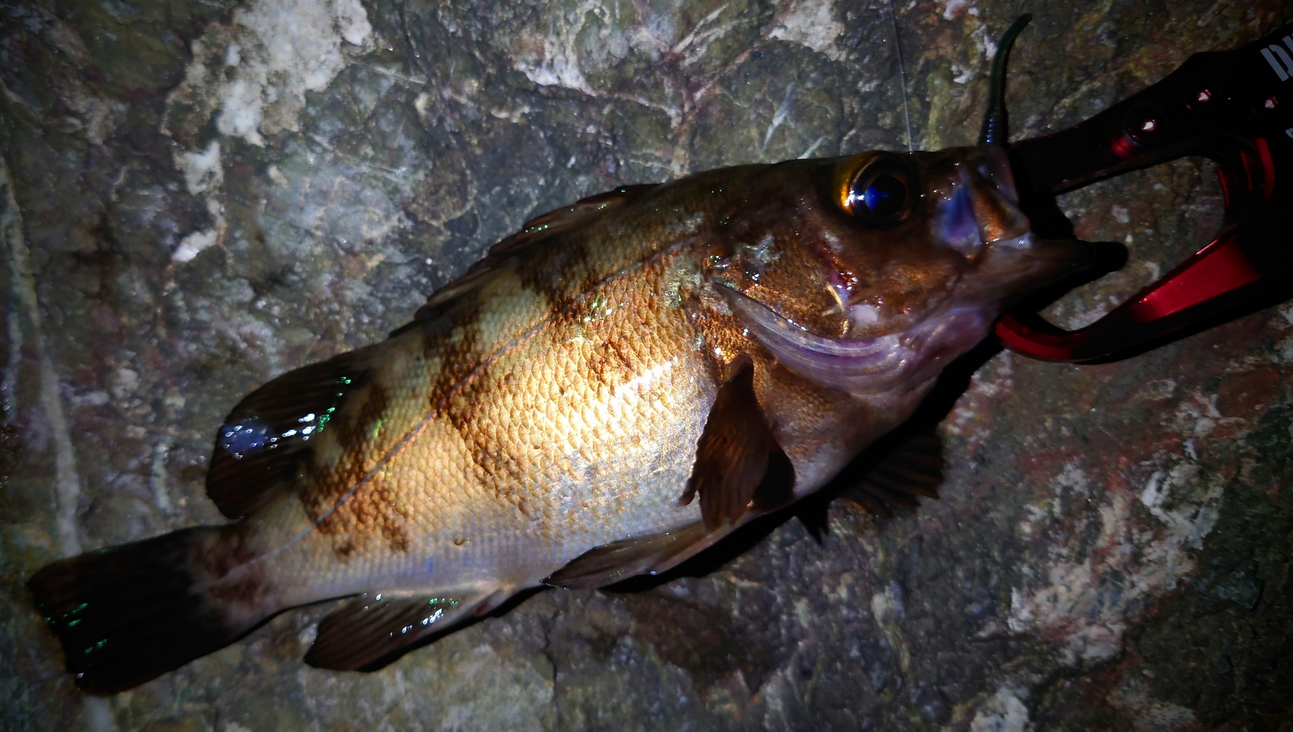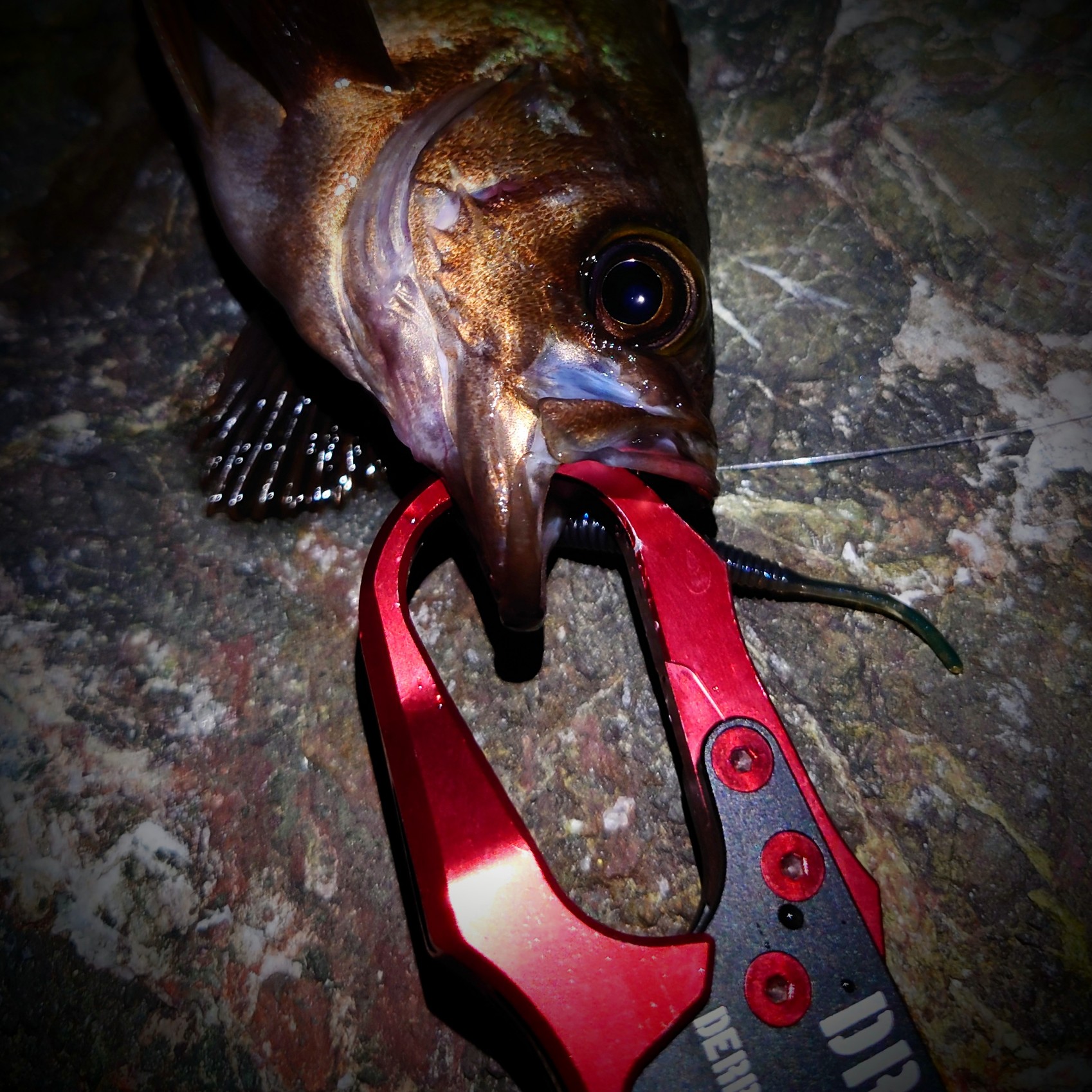 出発時間がかなり遅くなり上げ潮のタイミングでも良い時間帯を過ぎてしまい期待せずにライトソルトを楽しむつもりで釣り場に向かいました。PE0.3号で釣れる魚を狙う感じでタックルを準備してきたので…、メバルかシーバスか根魚か…という曖昧なセッティング。プラグで反応を見るつもりでキャストを繰り返しますが…、無反応!?1gのジグヘッドに2インチサイズのストレートワームにチェンジして表層をリトリーブすると『ゴン!』と小気味よい反応♪ 21㎝のメバルが釣れてくれました。しかし…、連発せずこのメバルで終了となりました。普段のメバルタックルは低伸度のナイロンラインを使用しているのでPEラインで釣った時の激しいファイトがロッドに伝わる感覚がナイロンラインとは違い新鮮でした、またチャレンジします!