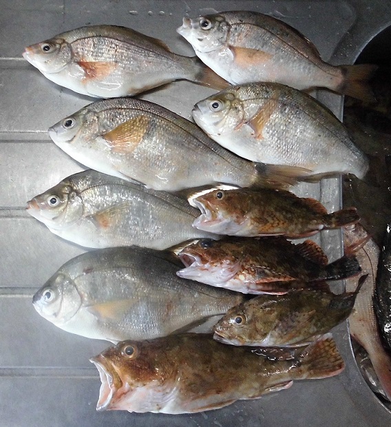 仕事終わりから釣り場へ走り初のポイントから開始!するとマグレでアジが1匹釣れる。それっきりなので場所移動、次の場所ではキスが少しで即移動。重めのシンカーにしてキスとマダイ小にカサゴを追加してすぐに移動、セイゴを探すが反応が出ず苦労するが後半で魚を見つけクロダイ小も追加出来ました。