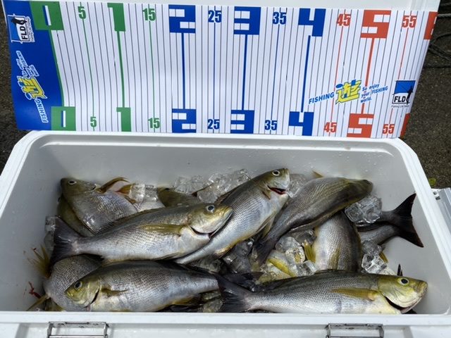 社内メンバーと石鏡の幸徳丸さんに行ってきました。狙いはイサキです。3日間ほど出船できない海況で、この日もやや風が残っていましたが徐々に収まる予報で出船。ポイントまで約30分走り、水深40m指示棚の30~35mを狙っていきます。いつものように手持ちスタイルで誘い、アタリを待っているよりもコマセを撒いた後は置き竿にして待っているだけがこの日のパターンのように感じました。腕も疲れず、勝手に釣れてくる夢のような釣行でした!これから鳥羽方面のイサキが最盛期を迎えます。是非行ってみて下さい。