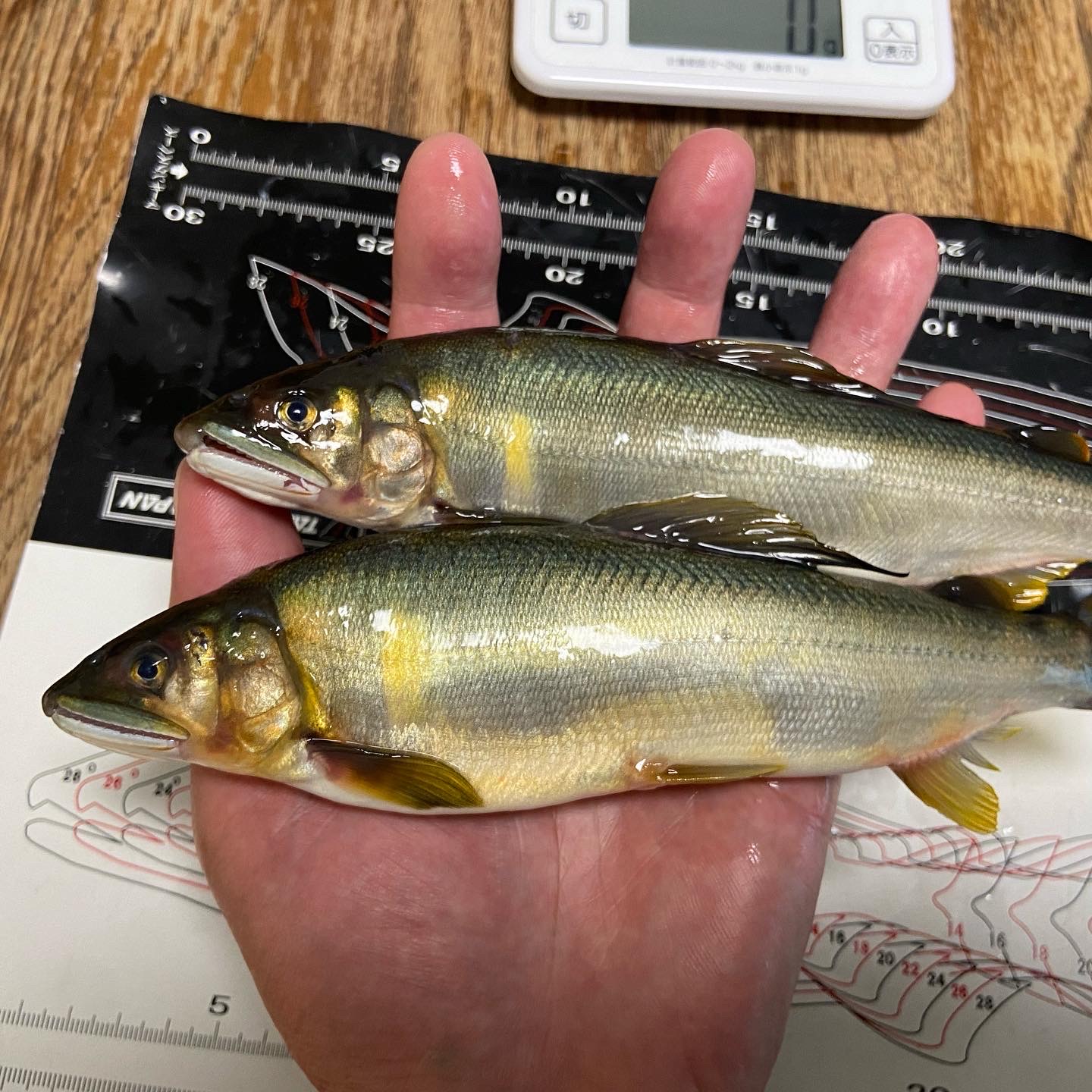 郡上の解禁初日に行って来ました。今シーズン5回目の鮎釣り。今年の郡上一発目は大和地区からスタート。神路の左岸の瀬で開始早々掛るもののドンブリ。仕掛けをゴツくして釣りすすめますが掛かってくるサイズが大もしくは特なので特を親にして瀬で掛けると引きずり回されます。もし郡上に行かれる方は通常よりもワンランクゴツめの仕掛で挑んだ方が良さそうですよ。朝の6時30分から15時15分までで22㎝110g頭に12匹の釣果でした。一番小さいのでも18㎝はあったので十分に鮎の引きは堪能できましたが、初期という事もありそれなりに細仕掛け、小針で挑んでのドンブリ2発が悔やまれます。次回は2日後の釣行なので万全に準備して楽しんでこようと思います。