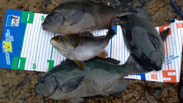 尾鷲市梶賀の磯へグレ釣りに行ってきました。いよいよ梅雨グレのシーズンという事でグレ本来の強い引きが味わえるのが魅力です。そんな期待をしながら今回渡礁したのは「ナナシ」。朝一より良く潮が動いておりかなりいい雰囲気。エサ取りのタカベはこの時期らしく適度にうるさいが時折サシエが抜けるので遠投で様子見をしていると竿をひったくっていくようなアタリ!引きもまずまずで無事タモに収まったのは40cm程のグレ。そこからポツリポツリを追加し35cmから41cmを3枚と35cm程のイサキを追加。午前中で納竿してきましたが、通しでやっていればもっとデカイのが釣れそうな雰囲気でした。機会をみてまたチャレンジしたいと思います。