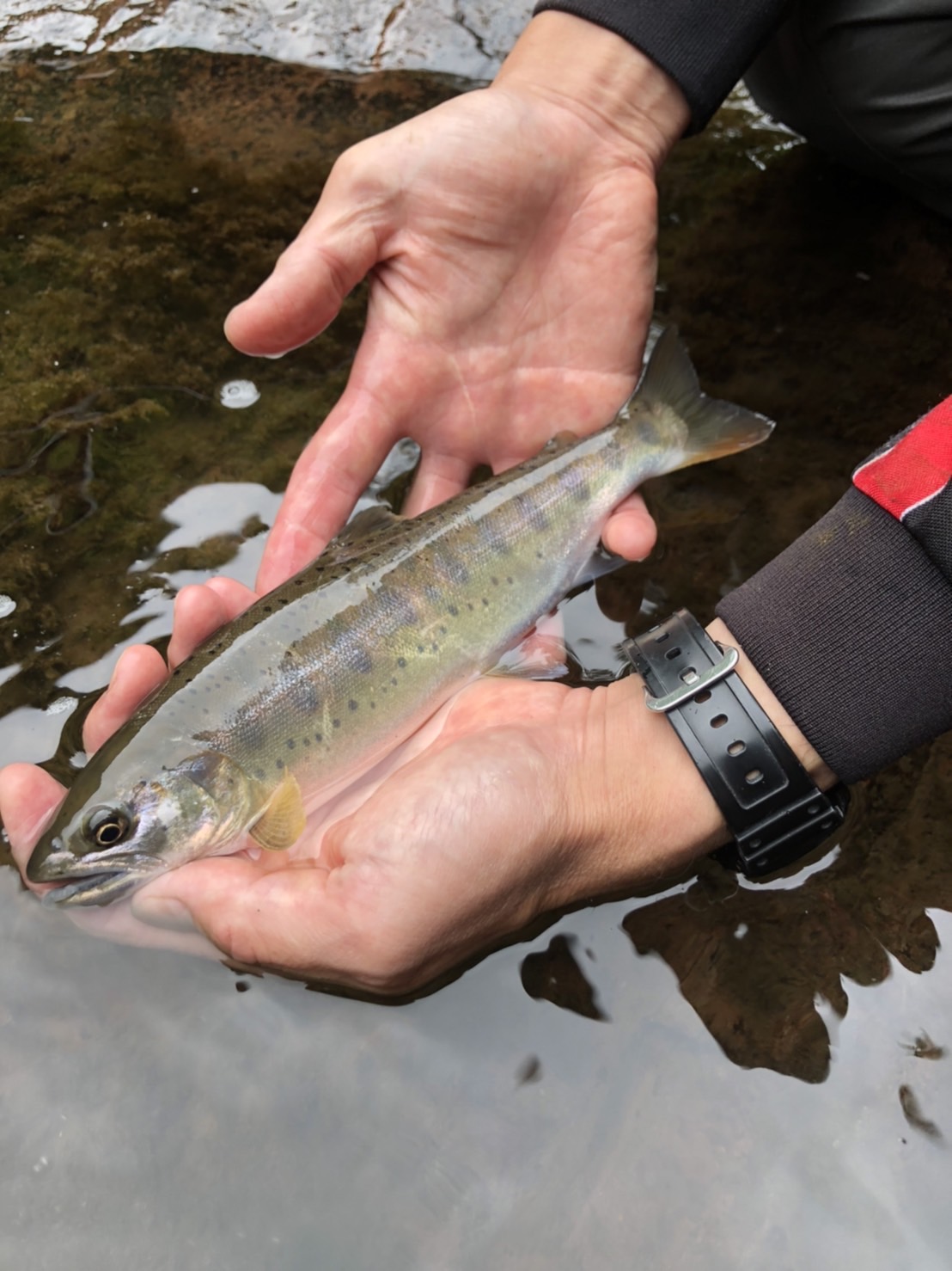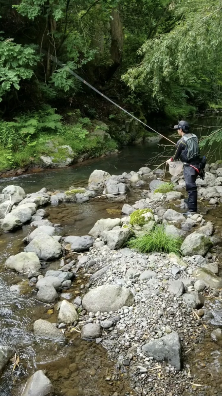 ここでもかわいいヤマメに悩まされましたが、同行した方に良いサイズのヤマメがヒット!!