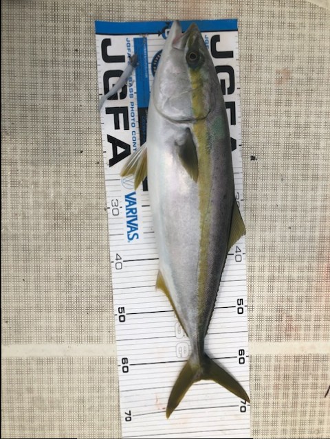 そして、狙ってはないですが、ゲストでワラサが釣れました!ドリームシャッドの3.5インチを22gのジグヘッドで少し沈めてからの巻き上げで反応しました。バースの外でかけて外に走ってくれたのでなんとか獲れました。