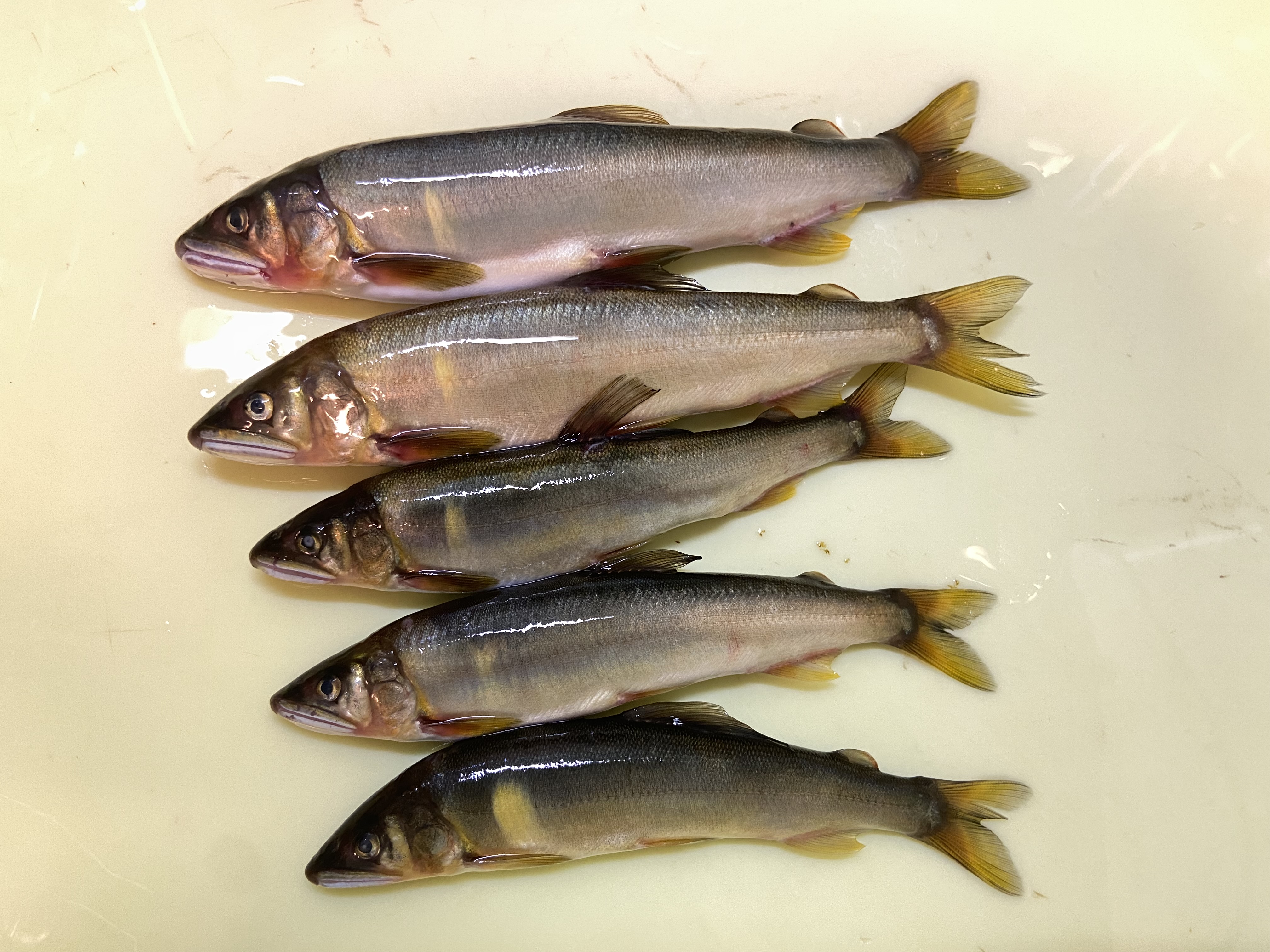 今年9回目の鮎釣りに行ってきました。今回は長良川郡上の杉ケ瀬やな。7時30分にスロープの前からスタート。やや流れの緩いトロ瀬で開始5分で天ちゃんに変えれて「今日は期待できるぞ!」とどんどん釣り下っていきます。途中かなり押しの強い白泡の掘れ込みでも真っ黄っ黄の鮎も連チャンし周りも人で一杯だったので、他の釣り人の方が12時頃お昼ご飯で川から上がるだろうと予測を立て、自分は10時半に早弁。15分程度でそそくさと昼食を済ませ、まだ叩いていないガチャガチャへ真っしぐら。が、しかし全く掛からないどころか舟から出したての囮もフラフラで親にならない鮎ばかり。何回か養殖に変えてなるべく強い泡に玉をかませてねじ込みますが反応なし。午前中の連チャンがウソの様。14時30分に雨雲レーダーに土砂降りの予報が出たので降られる前に撤収しました。結局5匹の不甲斐ない釣果に終わってしまい、帰り道にもう鮎釣りに行きたくなりました。次は白川の支流の解禁が休みなので黒川でリベンジしたいです。