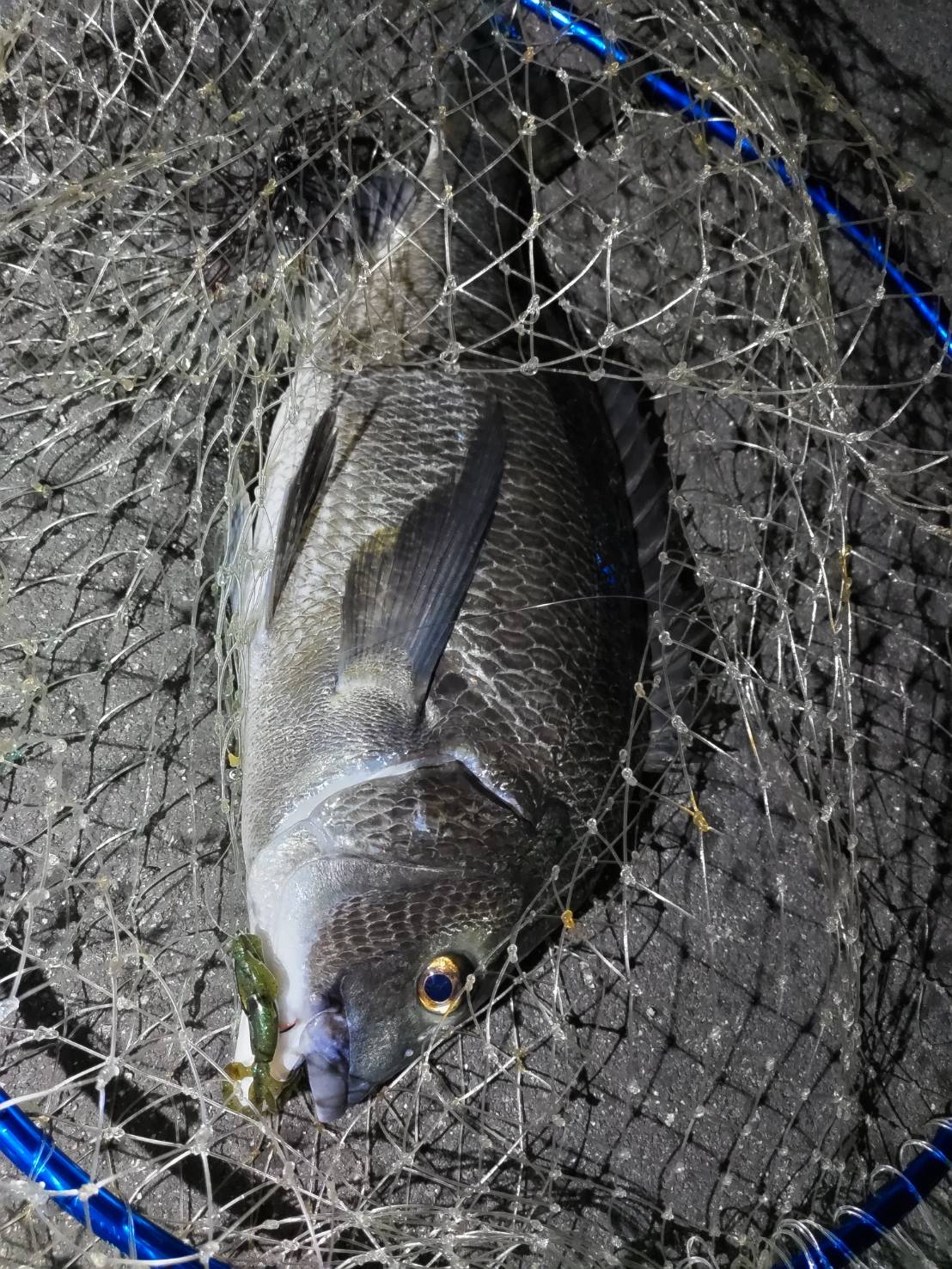 前回アタリのみでくやしい思いをしたフリーリグでのチニングリベンジに行って来ました!今回も前回同様のケイテックのクレイジーフラッパーを使っての釣行です!開始早々に同行者が本命のチヌをゲット!やはりクレイジーフラッパー強し!私にもアタリはあるもののなかなかヒットに持ちこめず(^_^;)しかし粘り強く誘い続けるとコンっからのひったくるようなアタリが!引きを楽しみながら無事にキャッチできたのは40cmオーバーの本命チヌでした!やはりクレイジーフラッパー強し!暑さを避けた夜釣で楽しめるチニングはオススメですよ!