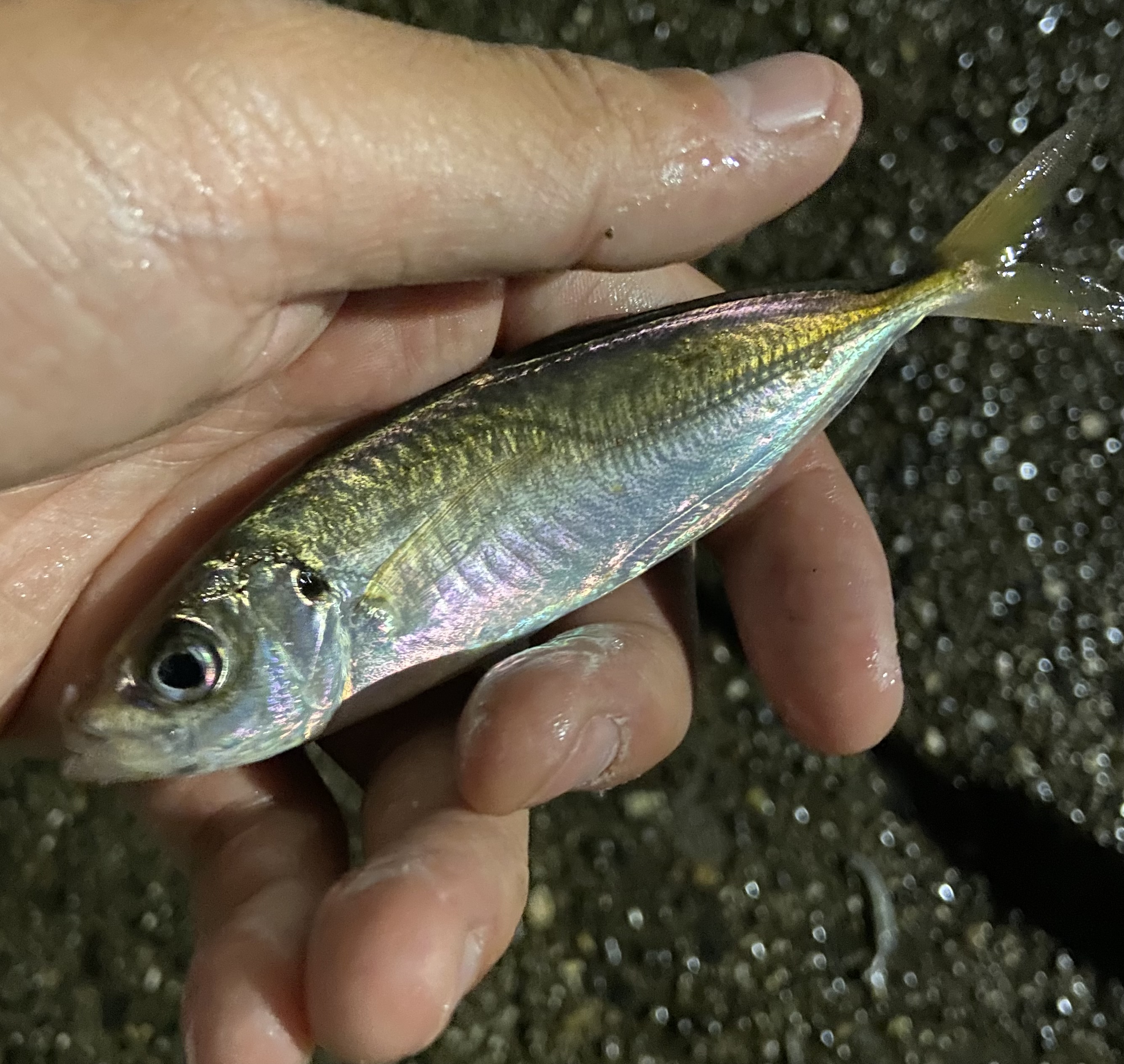 しかし釣れたのはどちらも10cm前後のセイゴとアジでした…タチウオはどこへやら笑