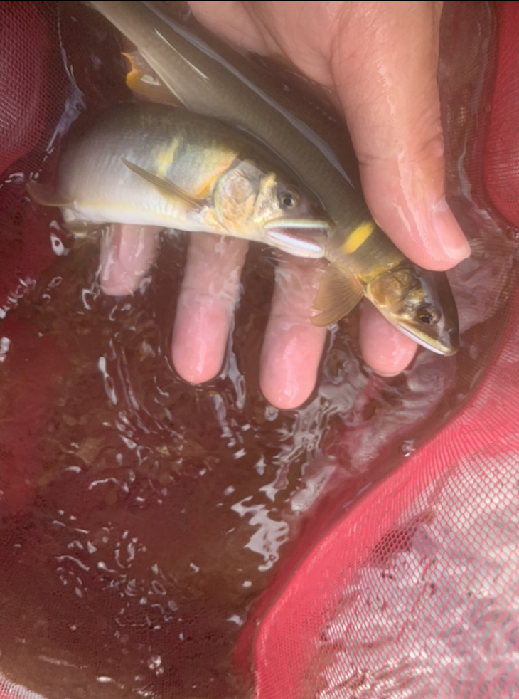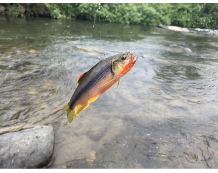 渇水続きで連日抜かれて厳しい状況でしたが、朝から夕方までやって竿抜け爆釣を期待しました。開始30秒で1匹目、16㎝の小型がとれました。その後中々掛からず1時間で3匹。完全に抜かれている。。。転々と歩いて移動して昼までに10匹。水温高くフネの中の鮎が4匹死んで他の鮎も弱っていたので、上流へ移動して昼食後にスタート。渇水だったので小針に変え、一角の6号を使用すると、良く掛かりました。今回は大型が殆ど居なかったのでメタコンポ0.05号に中ハリス0.8号を使用。泳がせメインで30匹でした。雨が降ったら倍くらいは釣れる様になると思います。