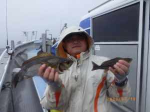 今期3度目のイサキ釣りへ、師崎の石川丸さんで行ってきました。前回は売りボウサイズが1匹と悲惨な結果となってしまったため、今回こそは良型のイサキをゲットすると胸に誓って乗船いたしました!終日雨の降る中、今回も大山沖のポイントでタナが24mからスタート。開始してすぐに良型がヒット!しかし、巻き上げ途中に一気に竿がのされて仕掛けが切れてしまいました・・・。 まさか・・・やつか・・・。すると船長のアナウンスが「サメが多いから気を付けてね!」・・・やっぱり!・・・。 その後ポイントを何度か移動してようやく40cmクラスの良型のイサキを釣る事ができホッとしました。その後は20cmクラスが1匹とソウダカツオが1匹で納竿となりました。