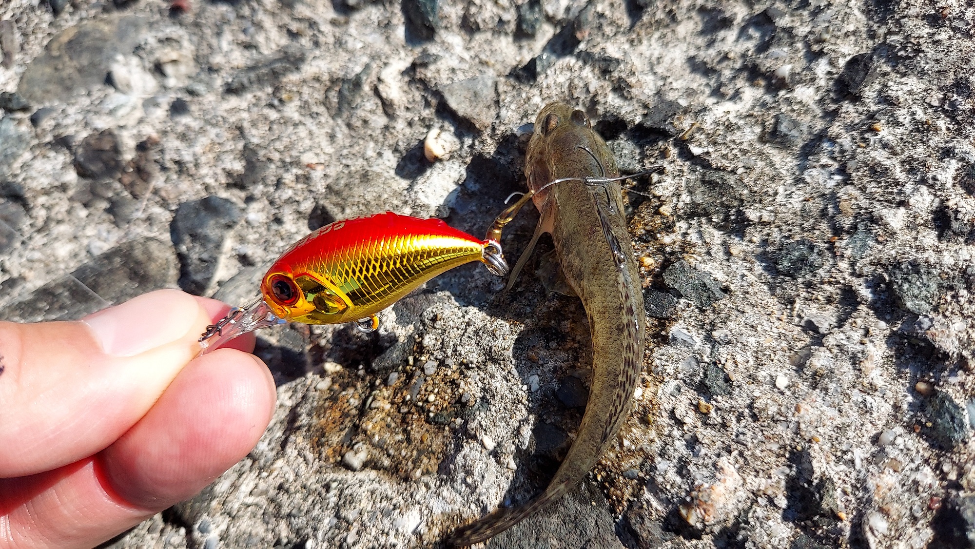 知多にハゼ釣りに行って来ました。今回はベイトフィネスでハゼクラをしました。ルアーはデュオの『テトラワークス クラクラ シンキング』純正の前後フックを外してリア側に自動ハリス止めをスプリットリングで付け、鮎の掛け針6.5号をセッティング。これで、じゃれつくハゼも一網打尽です。ちょいっと投げてゆっくり巻いて来るだけでハゼを寄せて1投目からヒット!大きさはまだ小さめの新子サイズ。短時間でしたが沢山釣れました。お盆くらいから秋にかけてハゼが大きくなるので楽しめます。ハゼクラの楽しさは体当たりしてきたアタリの大きさです。背中に掛かると引きも強くなりさらに楽しい。エサ釣りに飽きている方はルアーで狙うのも面白いかもしれませんよ。
