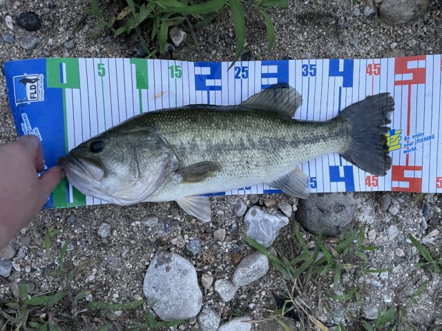 夕まずめ狙いの夕方5時から電撃釣行!いつものリザーバーに行き釣り開始!雨後の濁りといつもより少し流れが強め。必殺高比重系ワームがやりづらい、、そこでビックベイトをチョイス。何投かしてるとチェイスはあるもののなかなかバイトしてくれない。すこしポイント移動してみるも無反応。もう一度最初のポイントに移動。なんとかして1本釣りたく再び高比重系ワームで狙います。すると念願のバイト!上手くフッキングできずショックで叫んでしまいました(笑)再びキャスト!するとまたすぐにバイト!!今回は大事に少しおくらせフルフッキング!!めっちゃ引く!!重い!!これは50upきた~!!と思い慎重にやり取りしてハンドランディング!!長さを測ると48センチ!惜しい~けど嬉しい~!!めっちゃいいポテンシャルのバスが釣れました!!