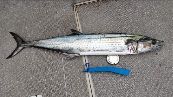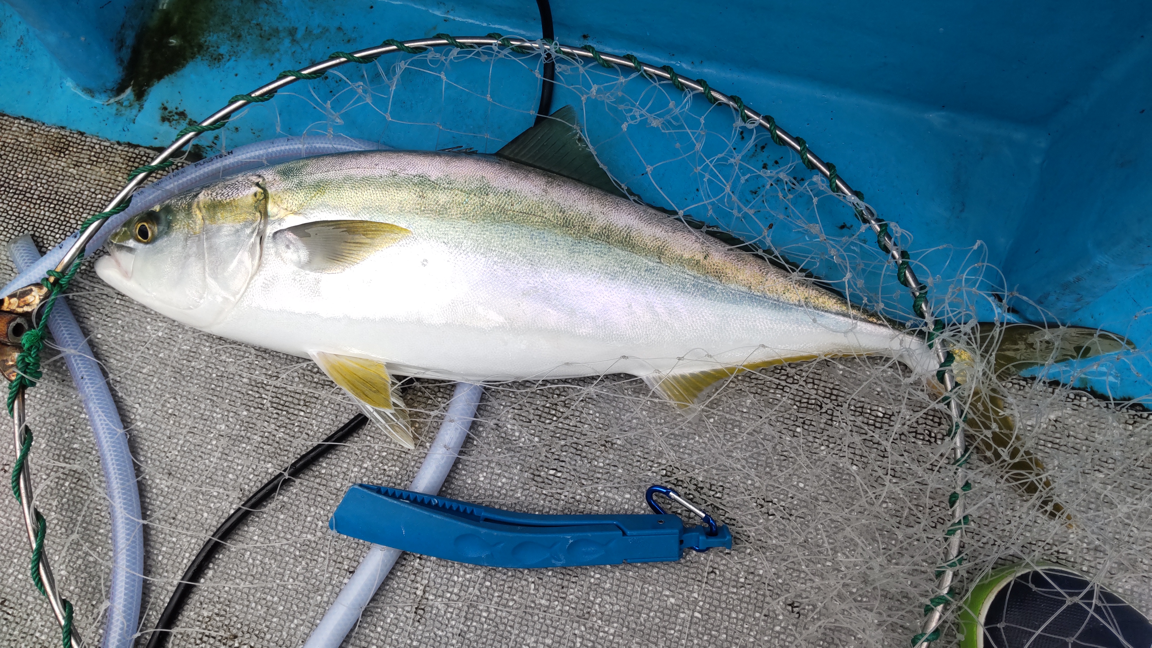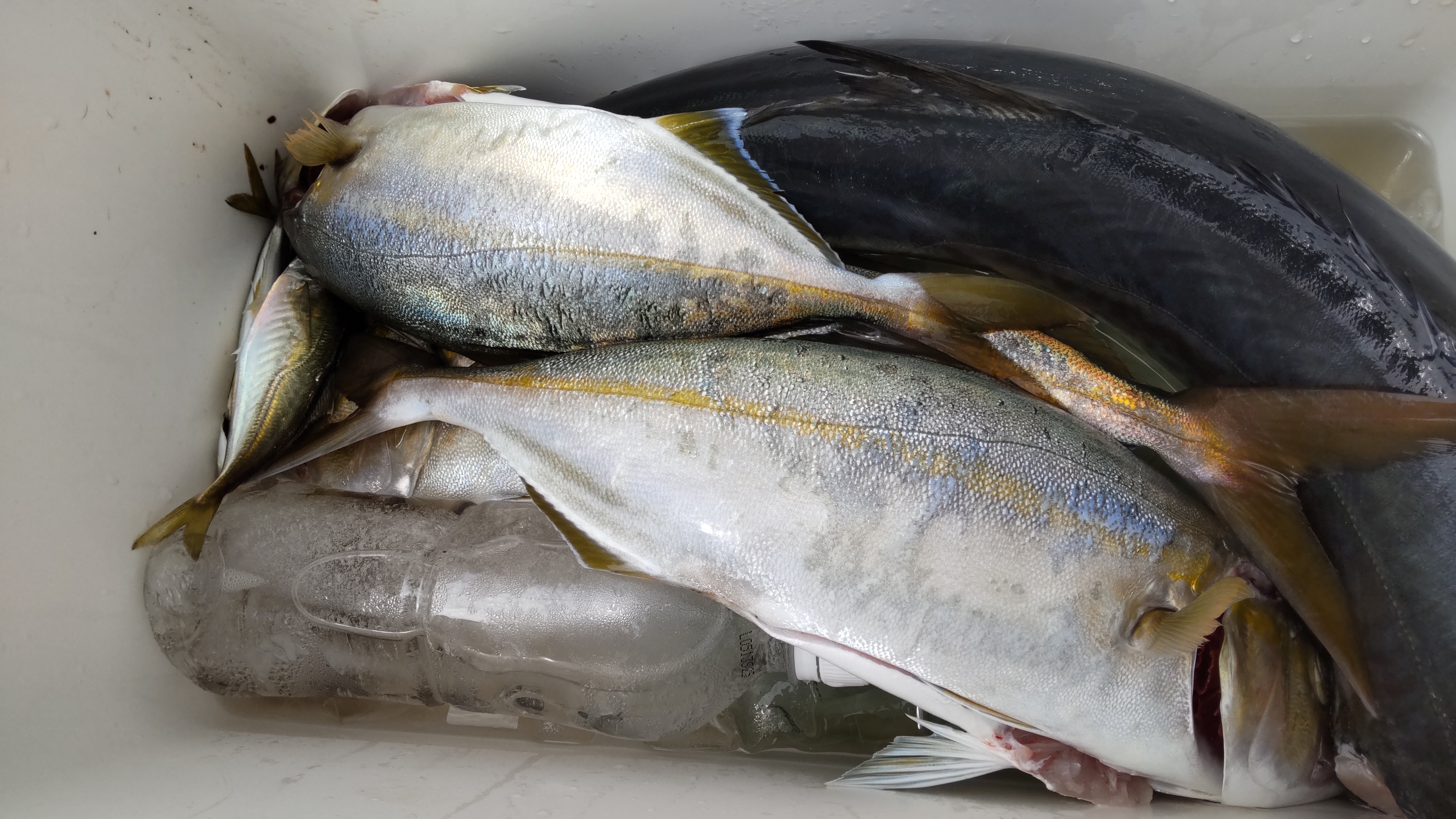 早朝からの豪雨でハラハラしましたが出船時には雨も上がりました。初めは水深15m程の浅場ポイントです。アジのベイトでシオやイサキが釣れました。深場ではイワシのベイトでサワラや大ハマチが釣れました。他メンバーはマダイ ヒラメなど釣れてました。ベイトの棚など船長さんに細かく指示してもらえるのでアタリも多く楽しい釣行になりました。