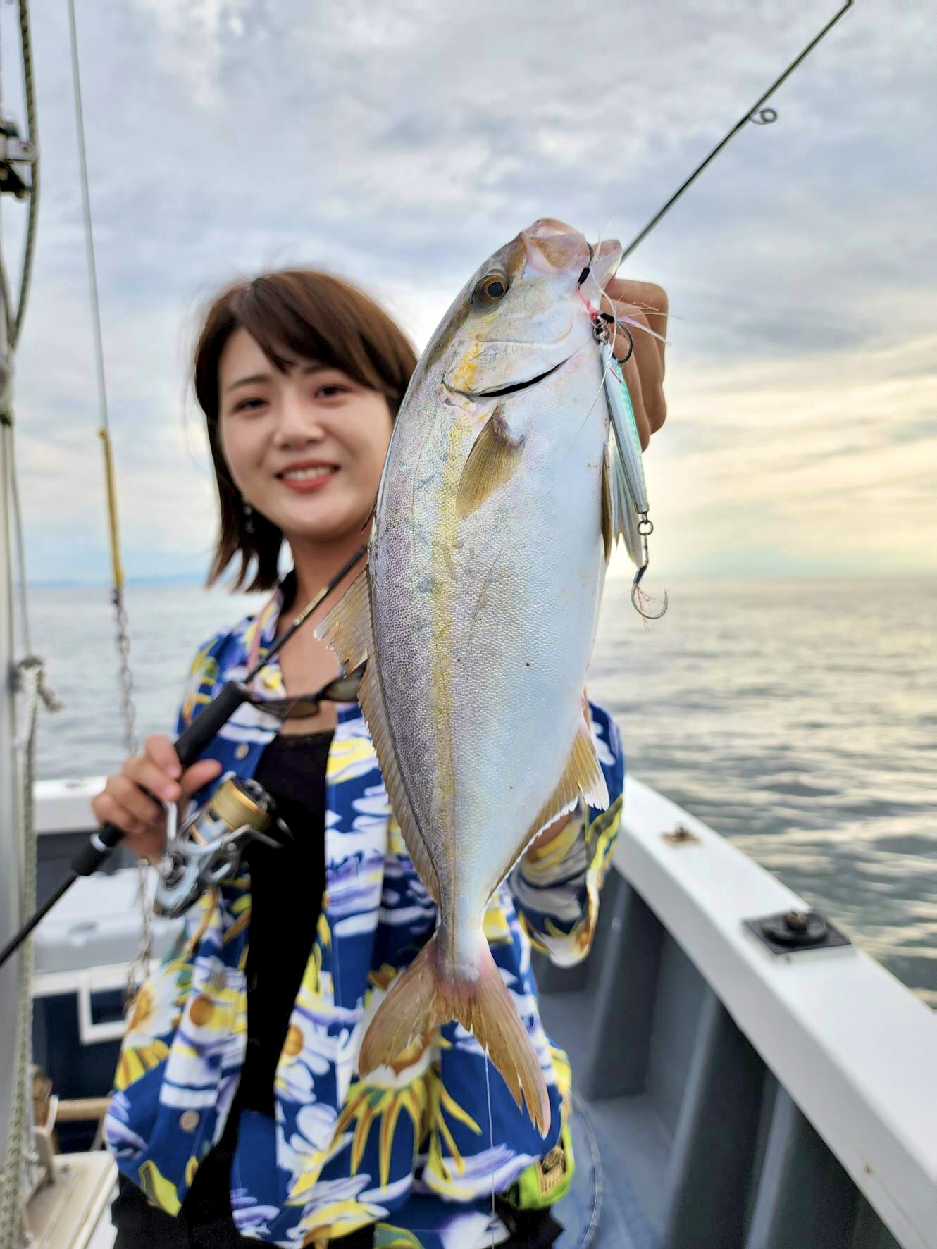 とりあえずシオでも釣って刺身確保に。速攻ヒット!シオには、シルバー系の少しスリムなジグが良く効きます!