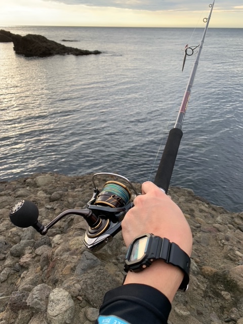 ちょっと満足したので新調した「オーバーゼアグランデ100MH-3 + カルディアSW6000SH」を持ち込みトップの誘い出し、60gのジグで青物を狙いました。 軽くはないタックルですが良く曲がり、投げやすく良い感じ!!! 3ピースは持ち運びも楽々♪