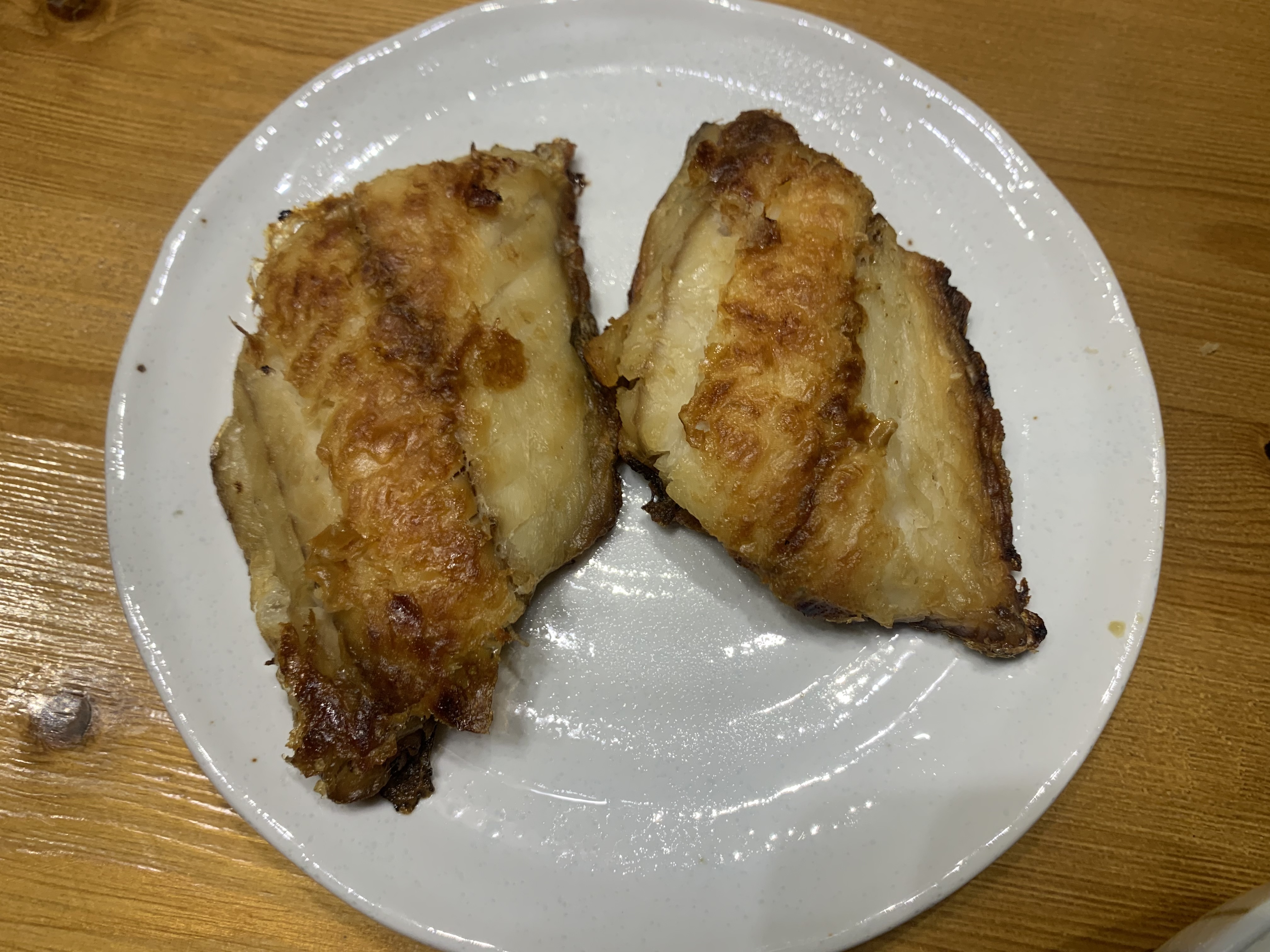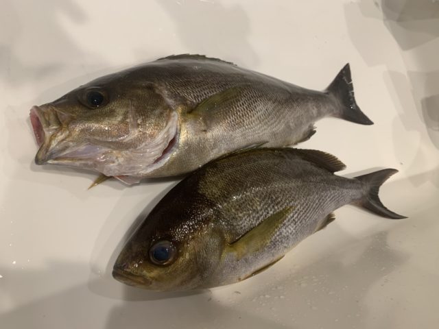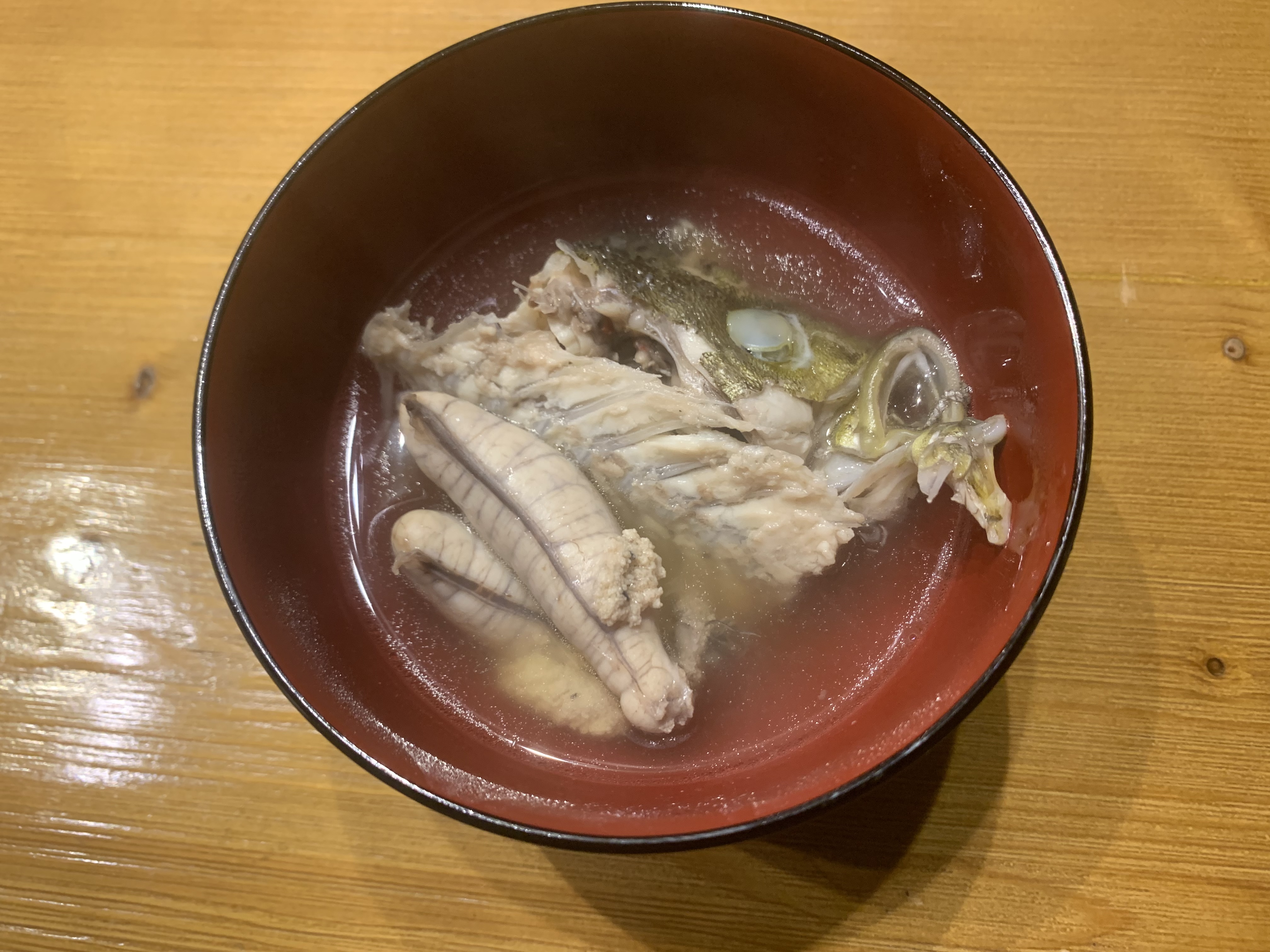 上司の福重さんが私のタックルでイサキ一匹、同期の石垣くんから一匹、合わせて二匹頂いたので、塩焼きとお吸い物にしました!とても美味しかったです!