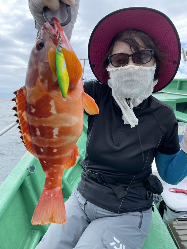 初スーパーライトジギングを南伊勢 海桜丸さんでお世話になりました。台風の波が残り、出船時はなかなか波が高く50gのジグでは全く底が取れず、80gで再挑戦。。なかなか難しい。初ヒットはエソでした。残念。。その後もなかなか当たりなく後半に突入、ポイントをかえ、波がもだいぶ落ち着いて50gのジグでゆっくり釣りを楽しめました。アカハタ、オオモンハタ、オジサン、イサキそしてエソで5種目達成!!船長の神経じめや処理で初オジサンも煮付けで美味しく頂きましたました。いつもニコニコ元気な桜山船長さんありがとうございました。