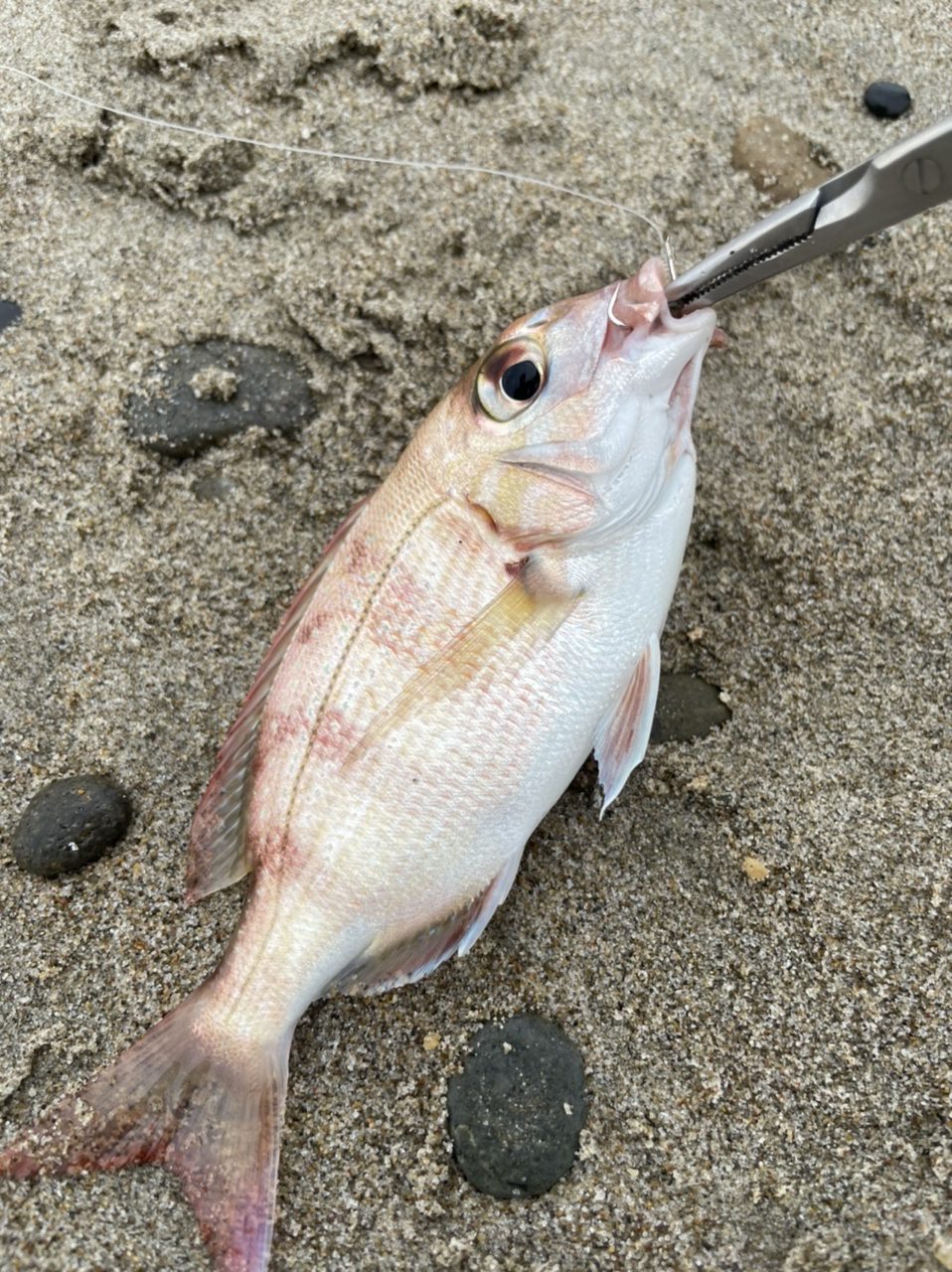 ド干潮の13時ごろスタート。開始1投目でヒット!良型のキス!置竿で竿先を眺めている時間がたまりません。その後1投1匹でチャリコかメゴチ…