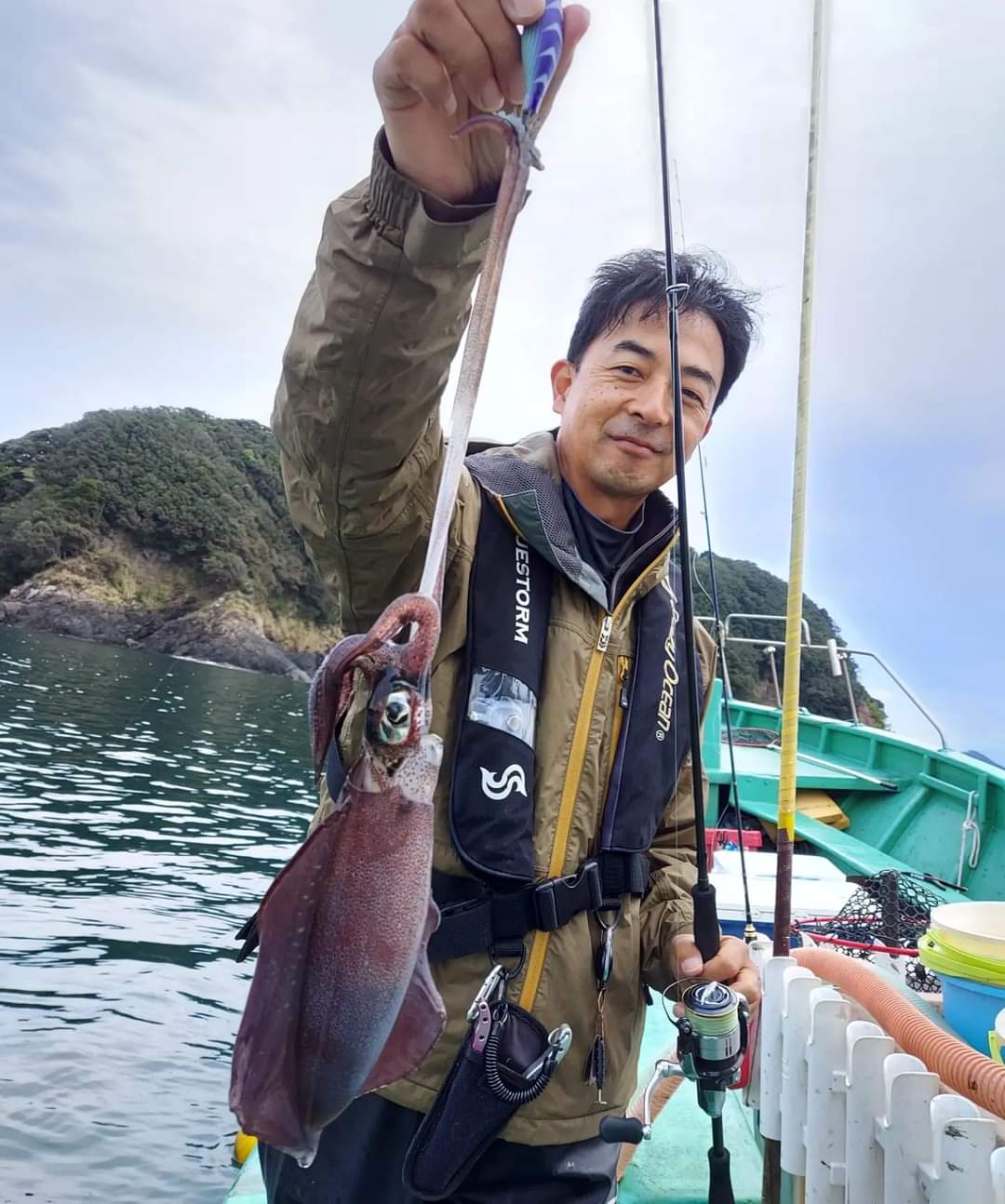 今回は強風の為中止・・・と思われていたが湾内ならと言う事でティップランエギングに行って来マシた。クレイジーオーシャンの太田さん仲さんと共に海桜丸へ。
