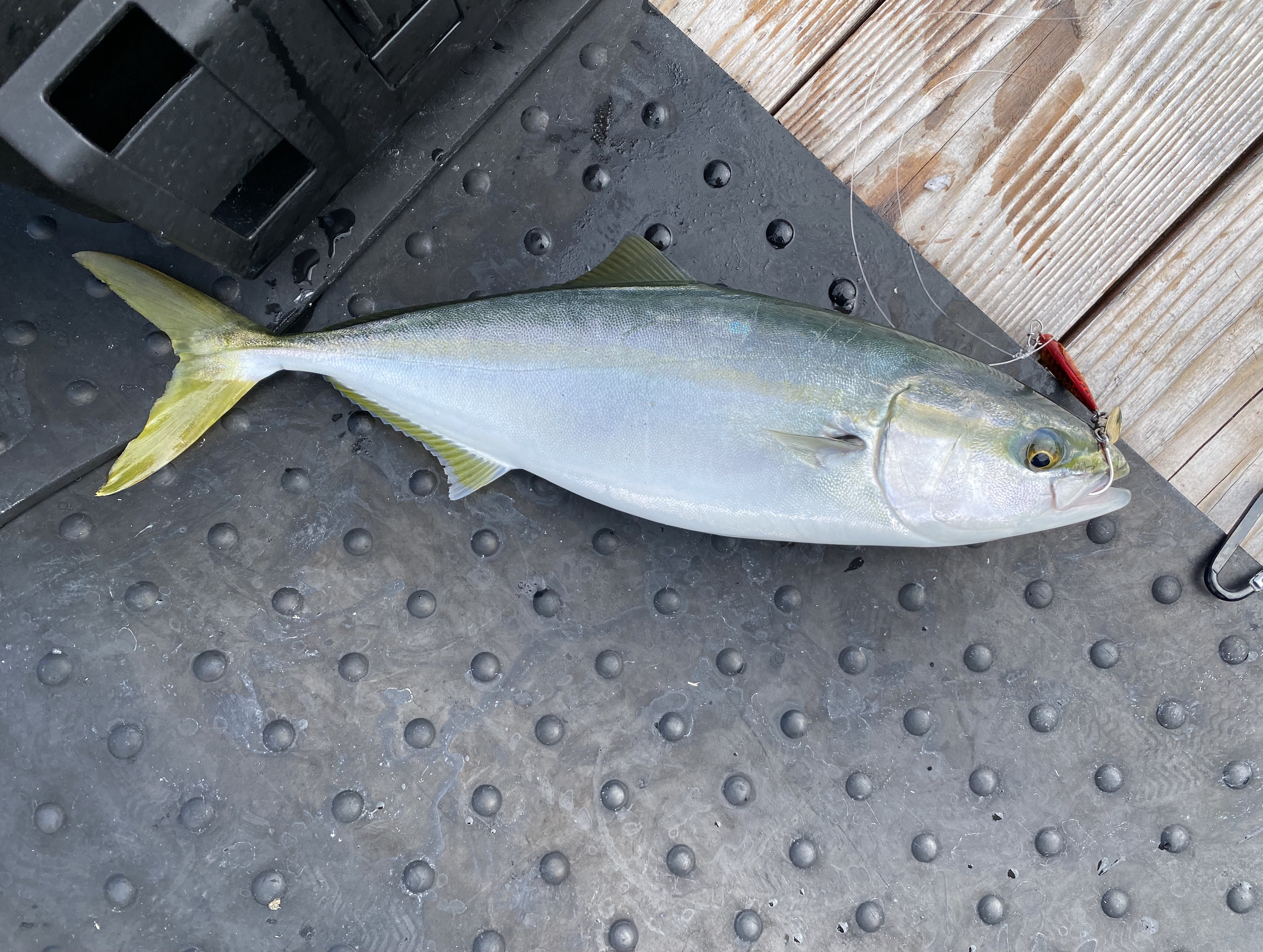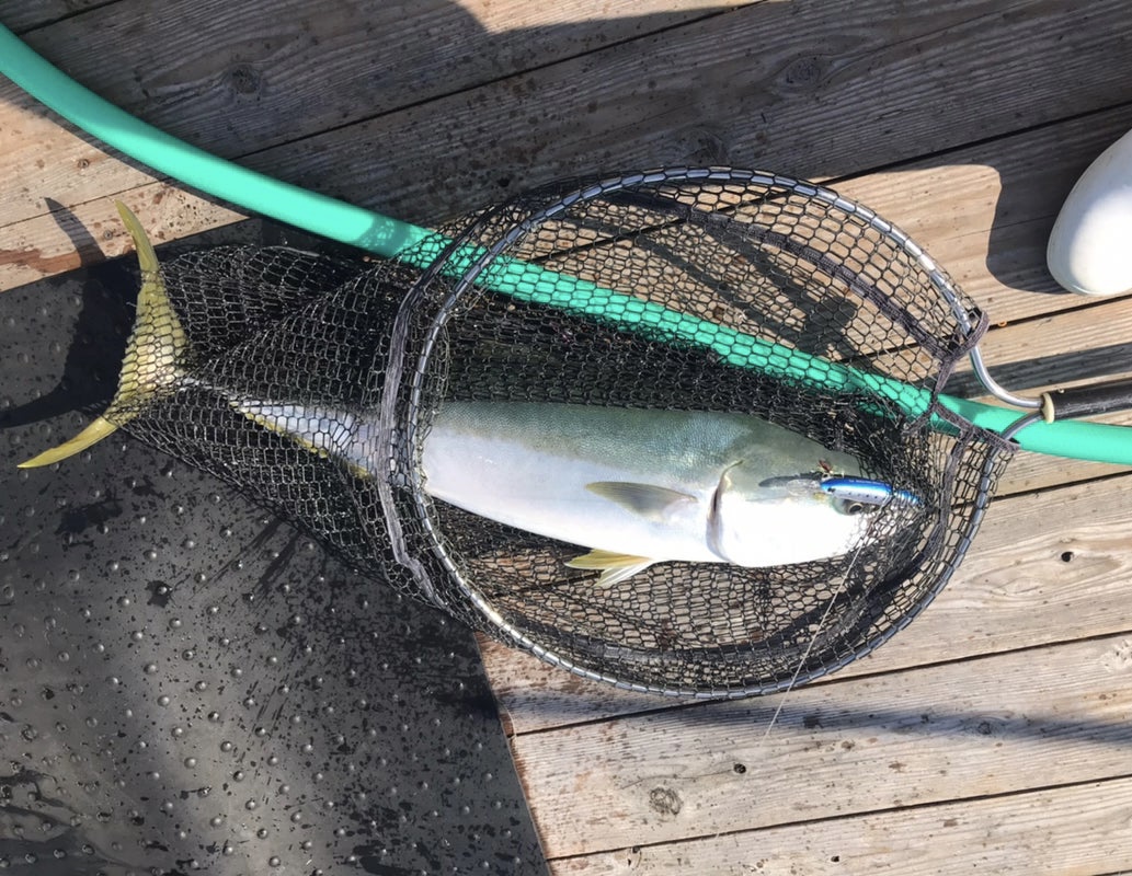 沈んでいる魚は小さめのメタルジグによく反応しました!メタルマジック40gの中速巻きでイナダをキャッチ。